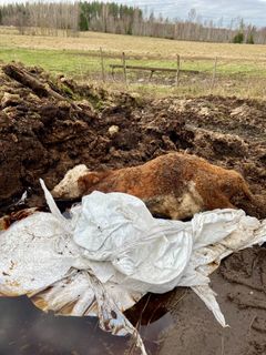 I november förra året besökte Djurrättsalliansen en köttgård i Hälsingland. Det första vi möttes av när vi gick in på gården var ett dött djur som låg slängt i en gödselhög. I en större lada med en utbyggnad som delvis var öppen stod kor, tjurar och kalvar instängda. Djuren vadade i sin egen avföring, en del hade gödsel upp till magen. Några djur var magra och inne i ladan låg djurhud och benbitar som som stack upp ur gödseln på marken. Levande djur gick runt bland döda kadaver som verkar legat där i olika lång tid. Genom ett hål i ladans vägg såg vi en bål med revben som stack upp ur högarna av gödsel precis bredvid ett levande djur.