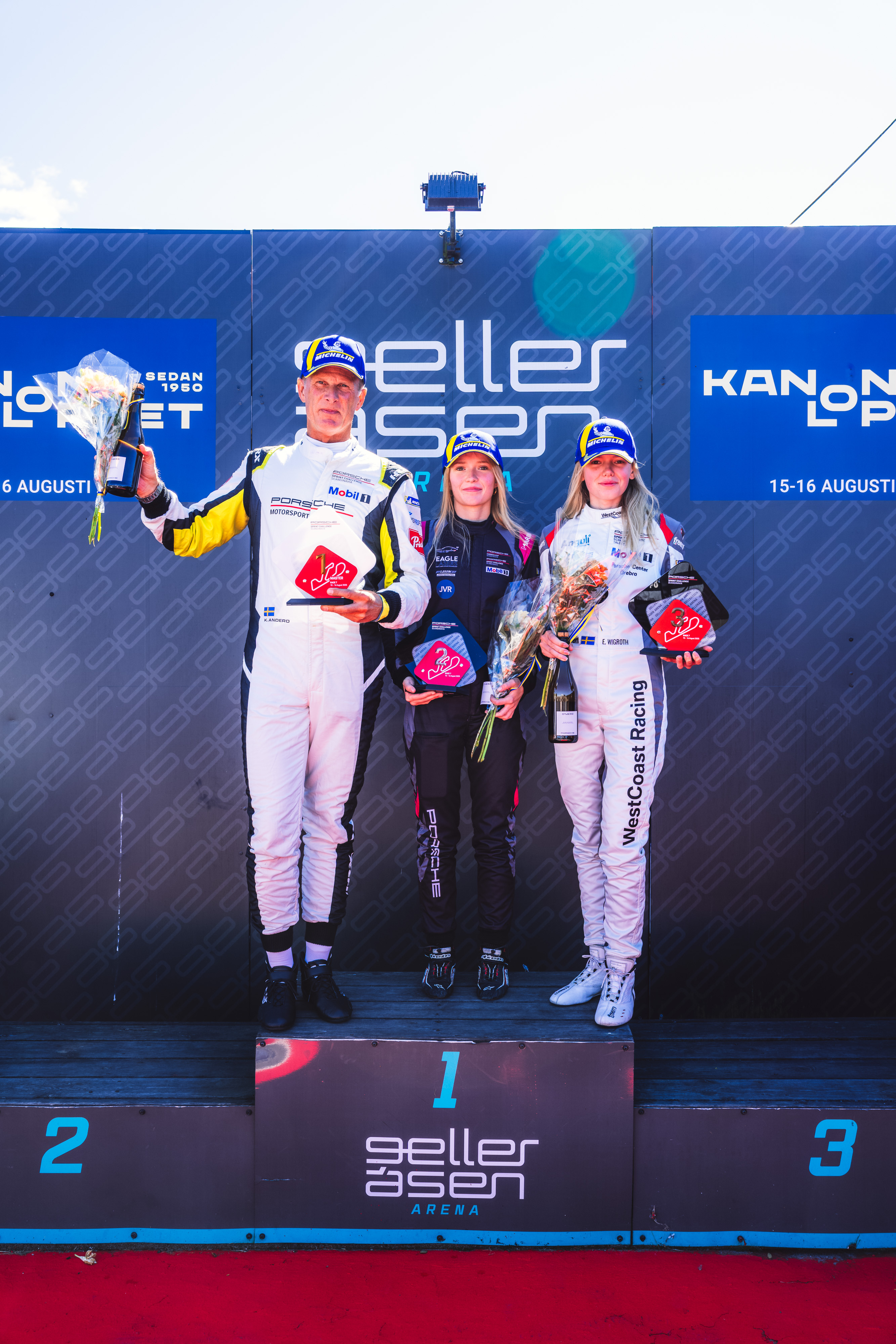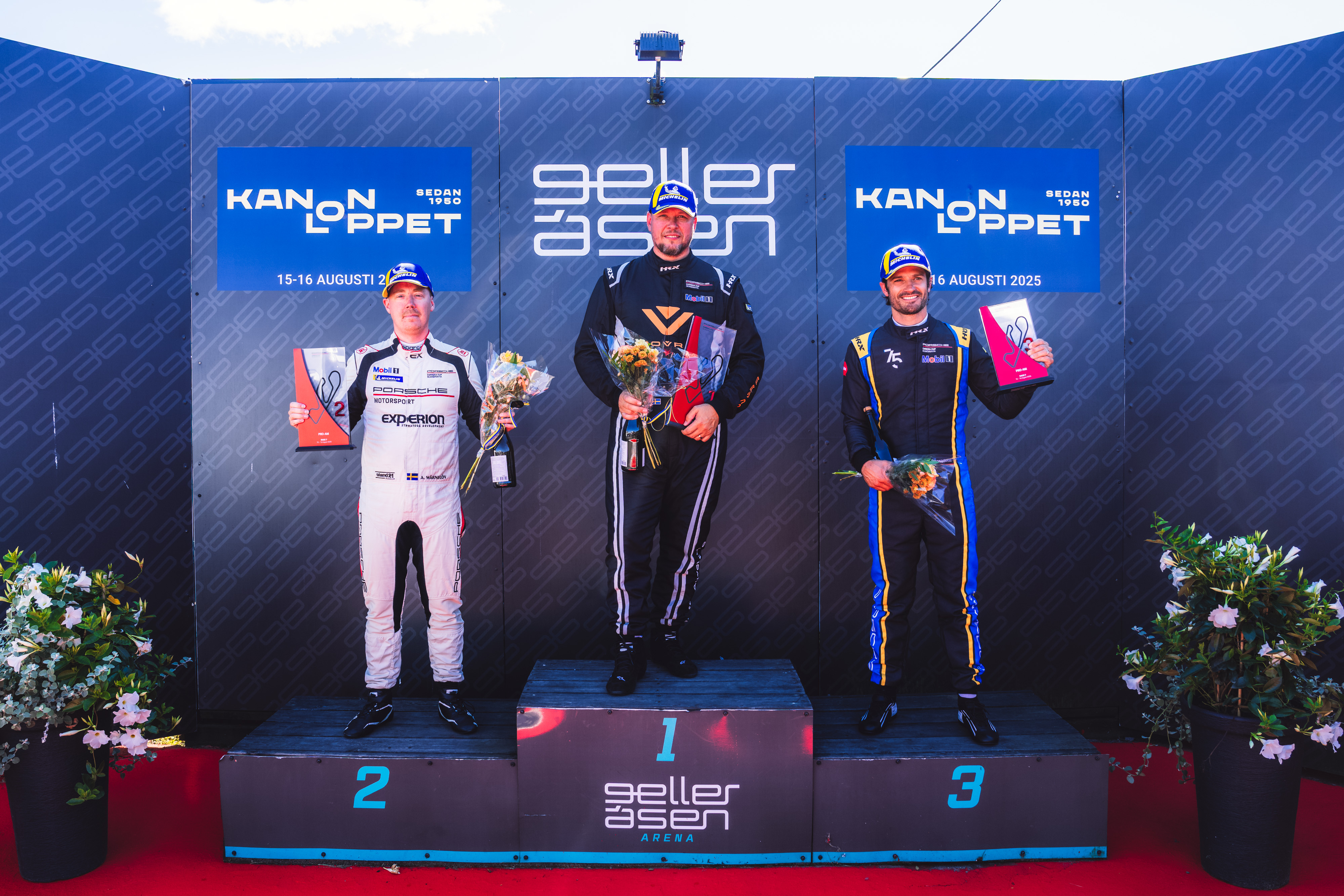 – Jag är jättenöjd. Roligt att komma på pallen den här tripppeljubileumsdagen – Porsche och Kanonloppet fyller 75 och det var mitt 100:e race. Jag är jätteglad att jag har en pokal att minnas den här dagen med, sa prinsen, som utöver Porsche Carrera Cup Scandinavia även fick möjlighet att provköra en Williams Formel 1-bil.
