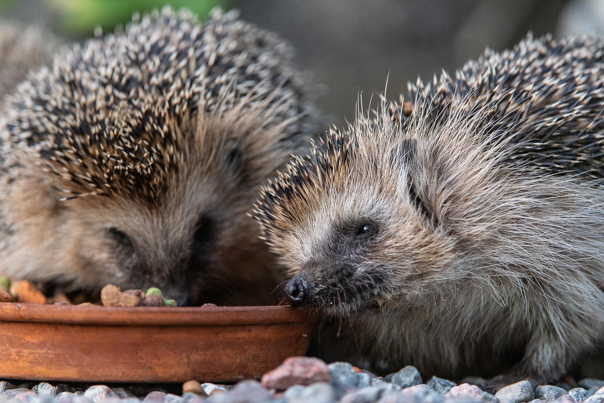 Igelkottar matas i trädgård. Foto: Ola Jennersten/WWF