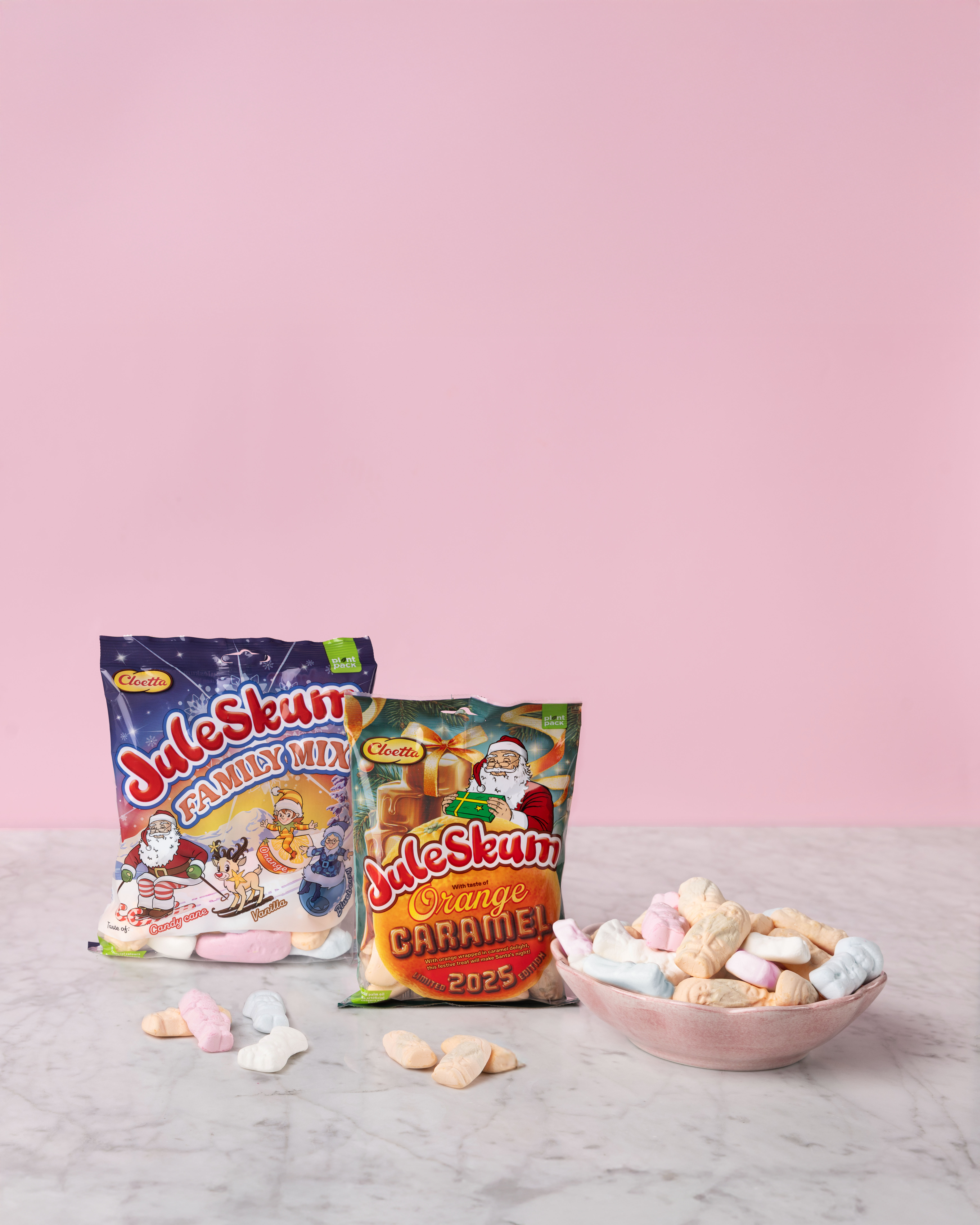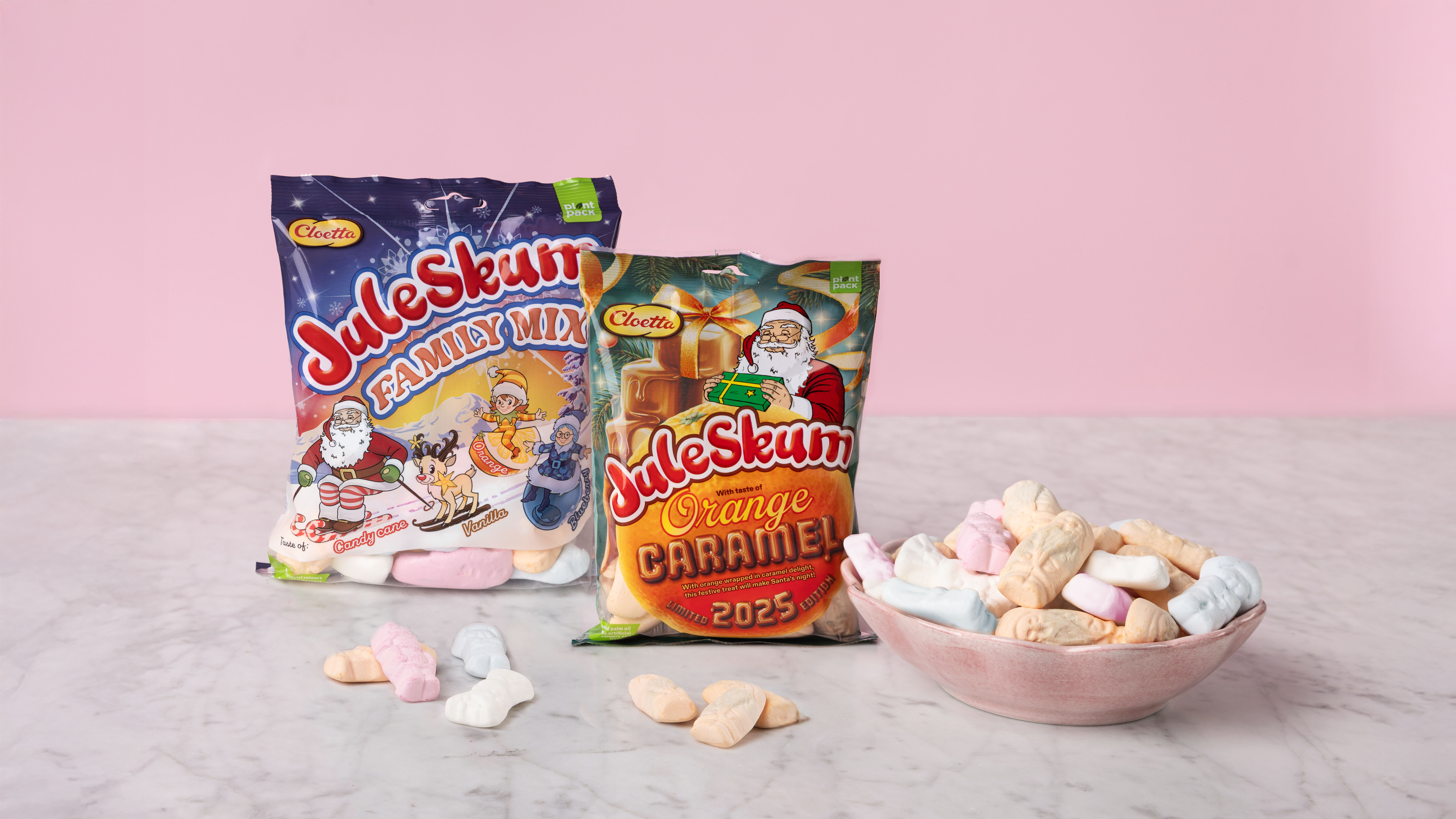 Juleskumtomtarna från Cloetta har blivit ett allt mer återkommande inslag på många julbord under årens gång, och har sedan 2011 även presenterats i en årlig smakvariant. Årets smak 2025 är Juleskum Orange Caramel – en härligt julig, söt och fruktig smakkombination av de efterfrågade smakerna karamellkola och apelsin – med samma klassiska konsistens som är karakteristiskt för Originalet.