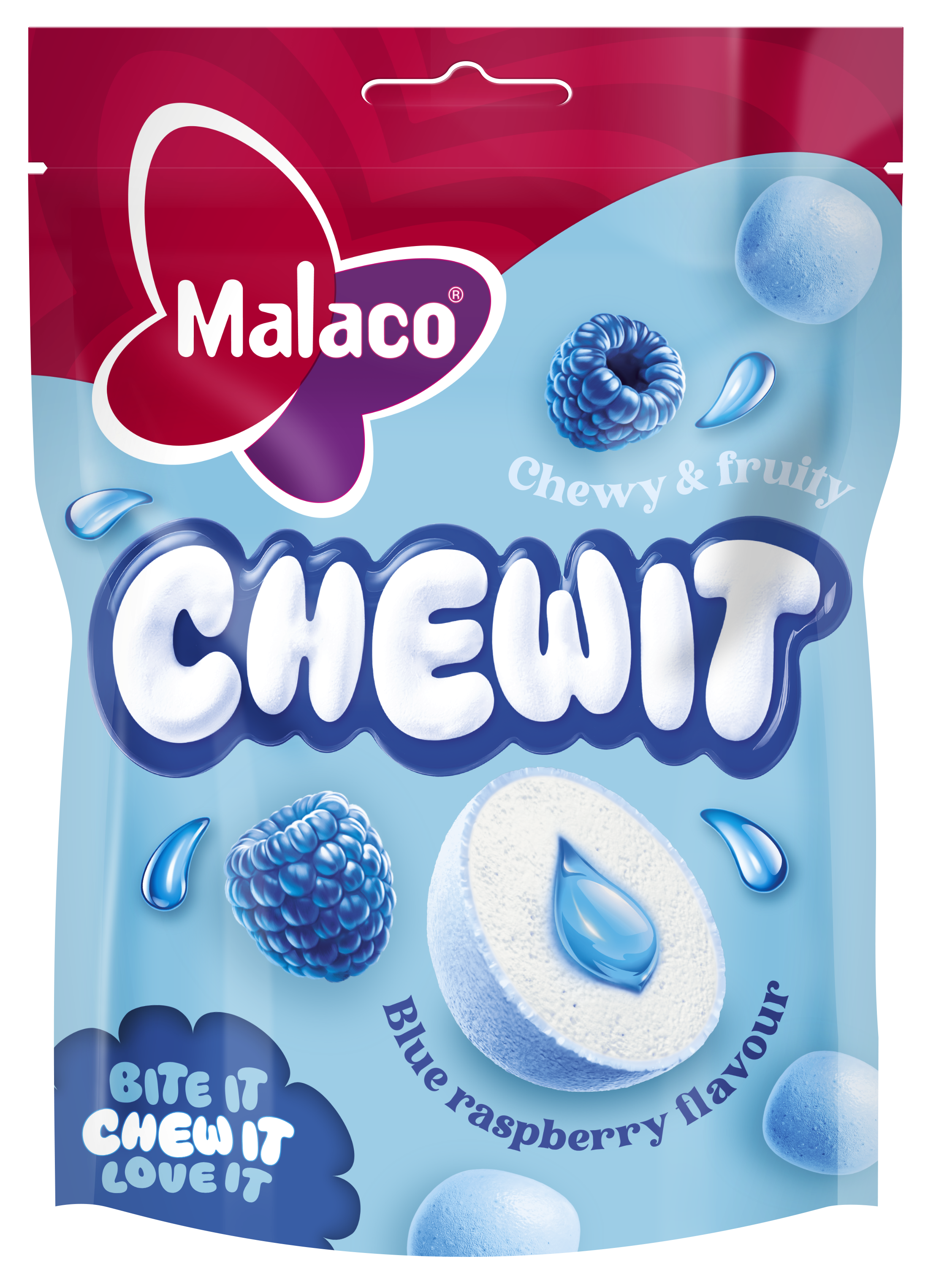 Med Malaco Chewit lanserar Cloetta Sverige ett nytt koncept – godisbitar med en mjuk, tuggvänlig textur i rund form med en härligt överraskande, smakrik fyllning. Produkten kommer i två smakvarianter, Strawberry och Blue Rasberry.