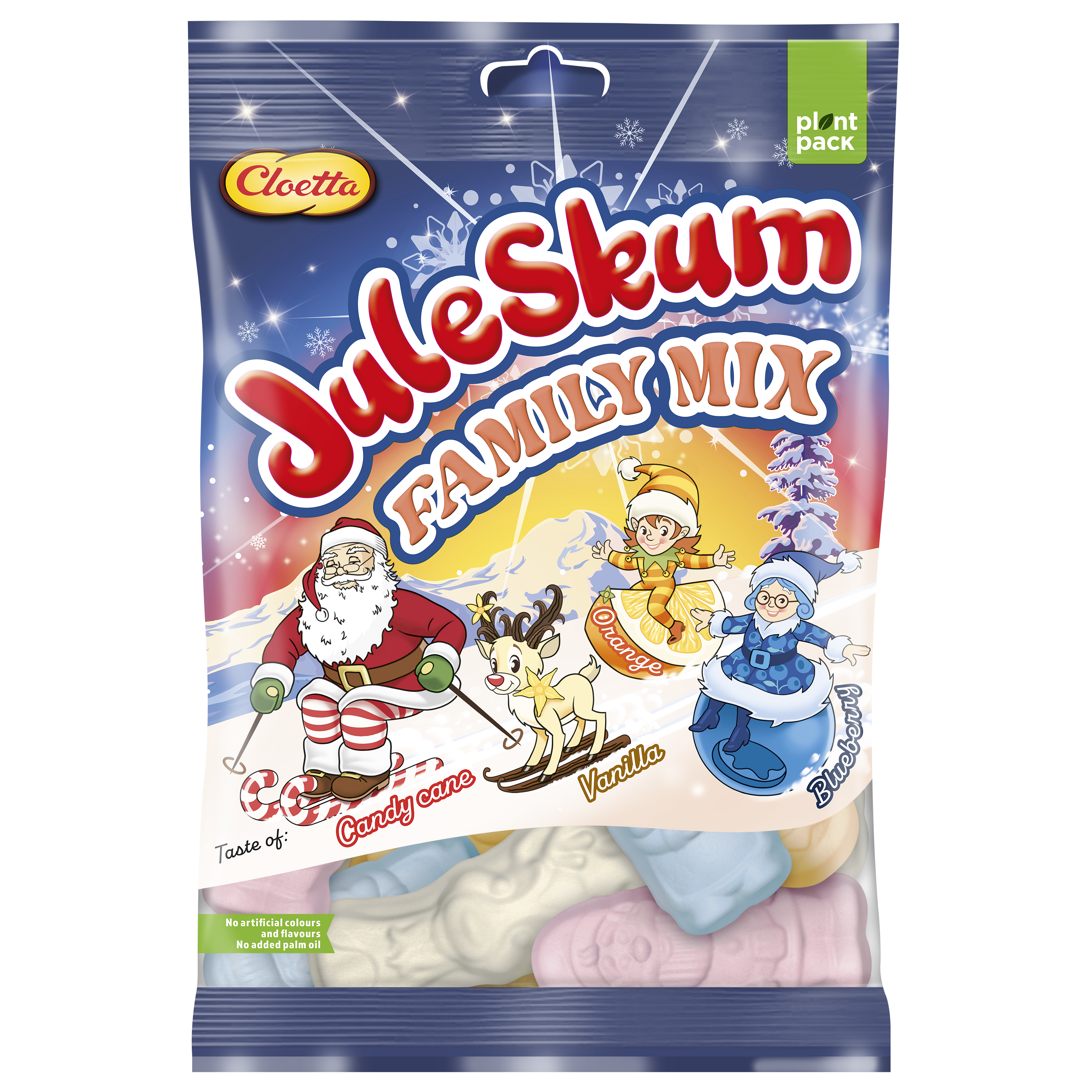 Nytt för i år är även Juleskumsfamiljens senaste tillskott – Family Mix – en mixpåse som samlar smakfavoriter från förr tillsammans med nya smaker i en och samma påse - med inslag av blåbär, polka, vanilj och apelsin.