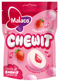 Med Malaco Chewit lanserar Cloetta Sverige ett nytt koncept – godisbitar med en mjuk, tuggvänlig textur i rund form med en härligt överraskande, smakrik fyllning. Produkten kommer i två smakvarianter, Strawberry och Blue Rasberry.