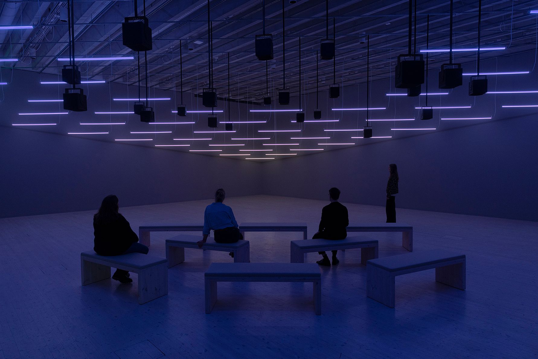 For the first time, Bildmuseet brings together three choruses of Machine Auguries, each simulating the experience of a particular place and moment. The first was created in London, where – as in many big cities – light and sound pollution are forcing birds to sing earlier, longer, louder or at higher pitches. The second was commissioned for Toledo, Ohio, a city located on the spring migration flyways from South America to the colder northern climes. In January 2025, the new 12-minute site-specific Umeå chorus premieres. Working with local sound recordists, ornithologists, and sound archives, Ginsberg has collated field recordings of bird species iconic to this subarctic ecosystem in northern Sweden.