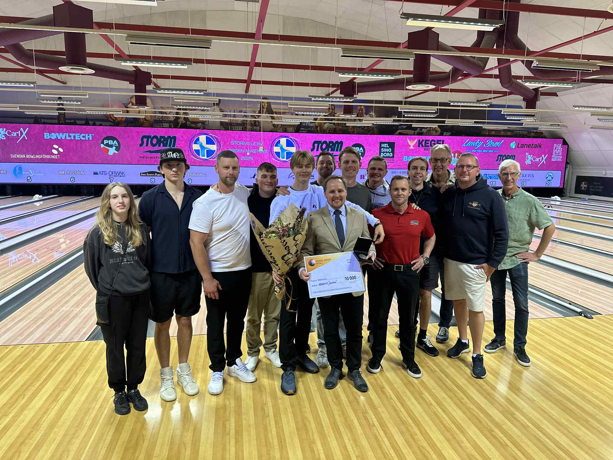 Stämningen var på topp i Olympia Bowling igår kväll och ett stort jubel utbröt när det stod klart att Götaspelaren Rasmus Edvall fick ta emot bowlinglegendaren Magnus Johnsons medalj i samband med Storm Lucky Larsen Masters.