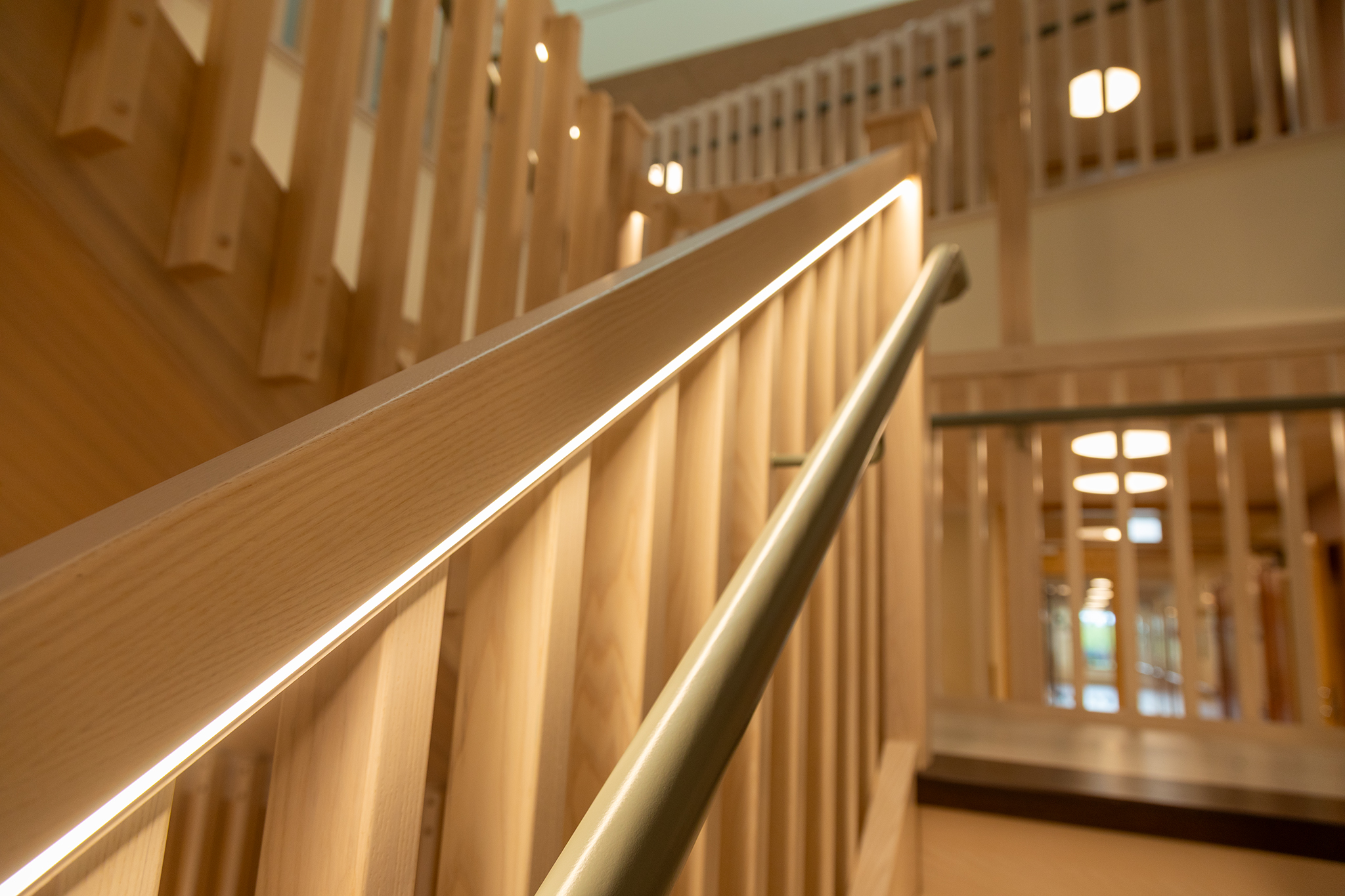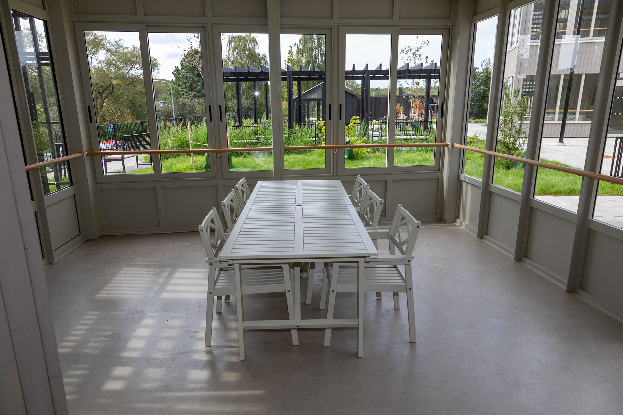 Inomhusmiljön bjuder på ordentligt med ljusinsläpp, mycket träinslag och fönstersättning i rummen och i den gemensamma ytorna som ger fina utblickar för de boende.
