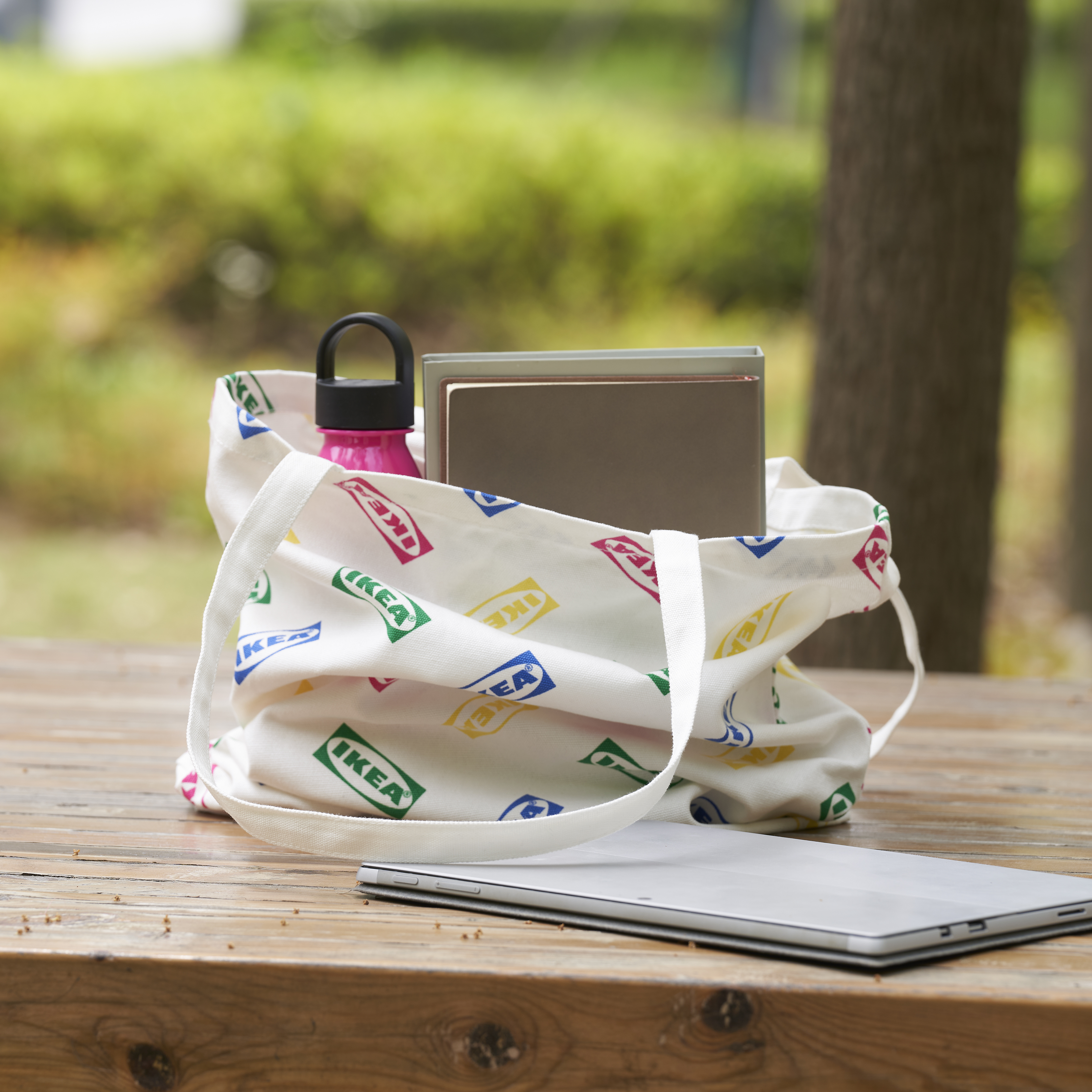 En%20vit%20tygp%E5se%20med%20f%E4rgglada%20IKEA%20logotyper%20p%E5.