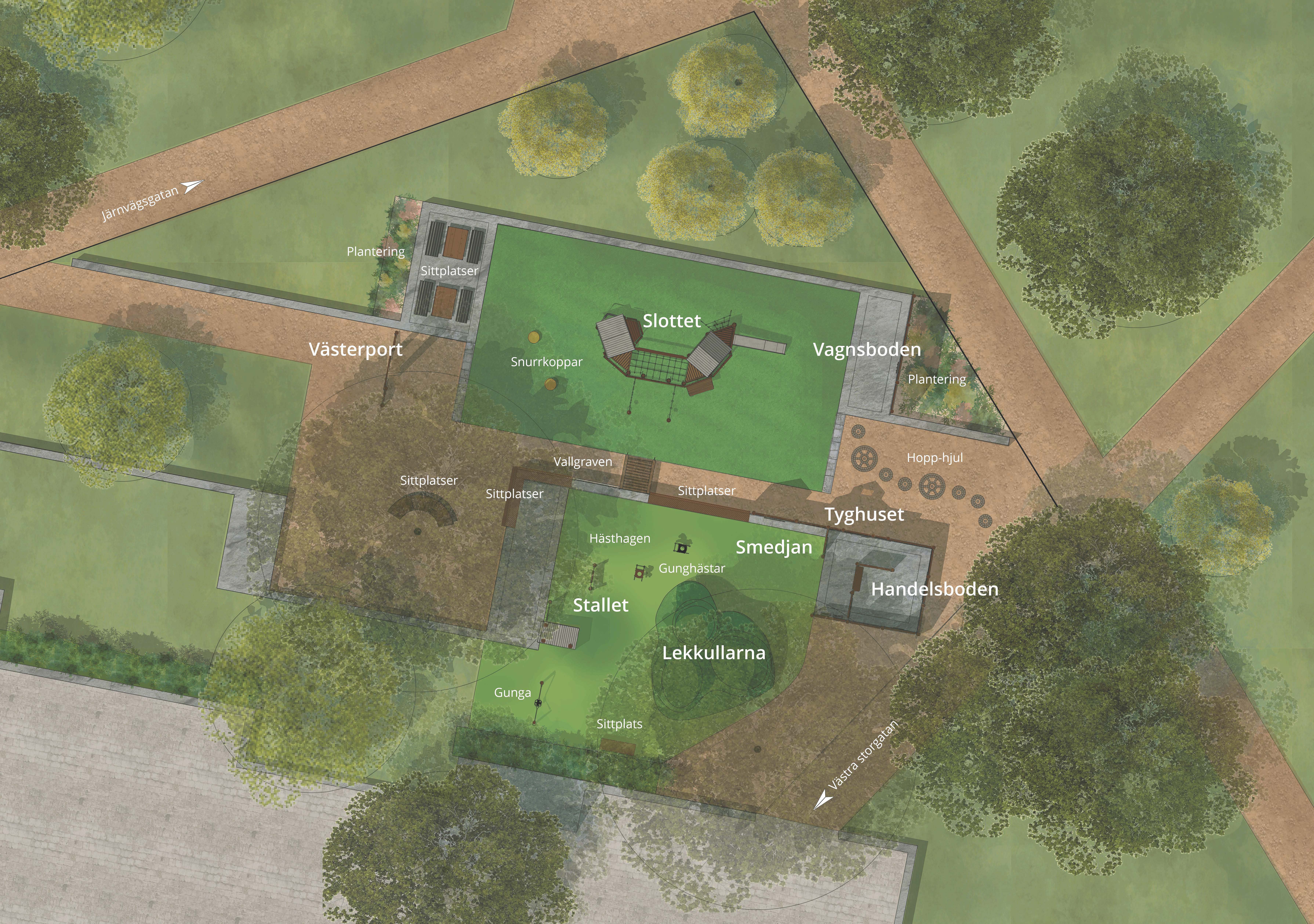 – I projektet ser vi bland annat över lekplatsens utformning och kompletterar med fler sittplatser och bord. Det är en lekplats mitt i centrala Jönköping så träden fyller en viktig och uppskattad funktion i form av skugga och avskärmning från trafiken, säger Jannica.