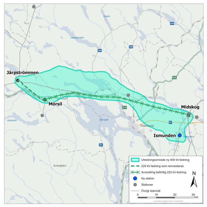 - Ny kraftledning om 400 kV byggs mellan stamnätsstation Järpströmmen i Åre kommun och ny stamnätsstation Ismunden i Ragunda kommun.