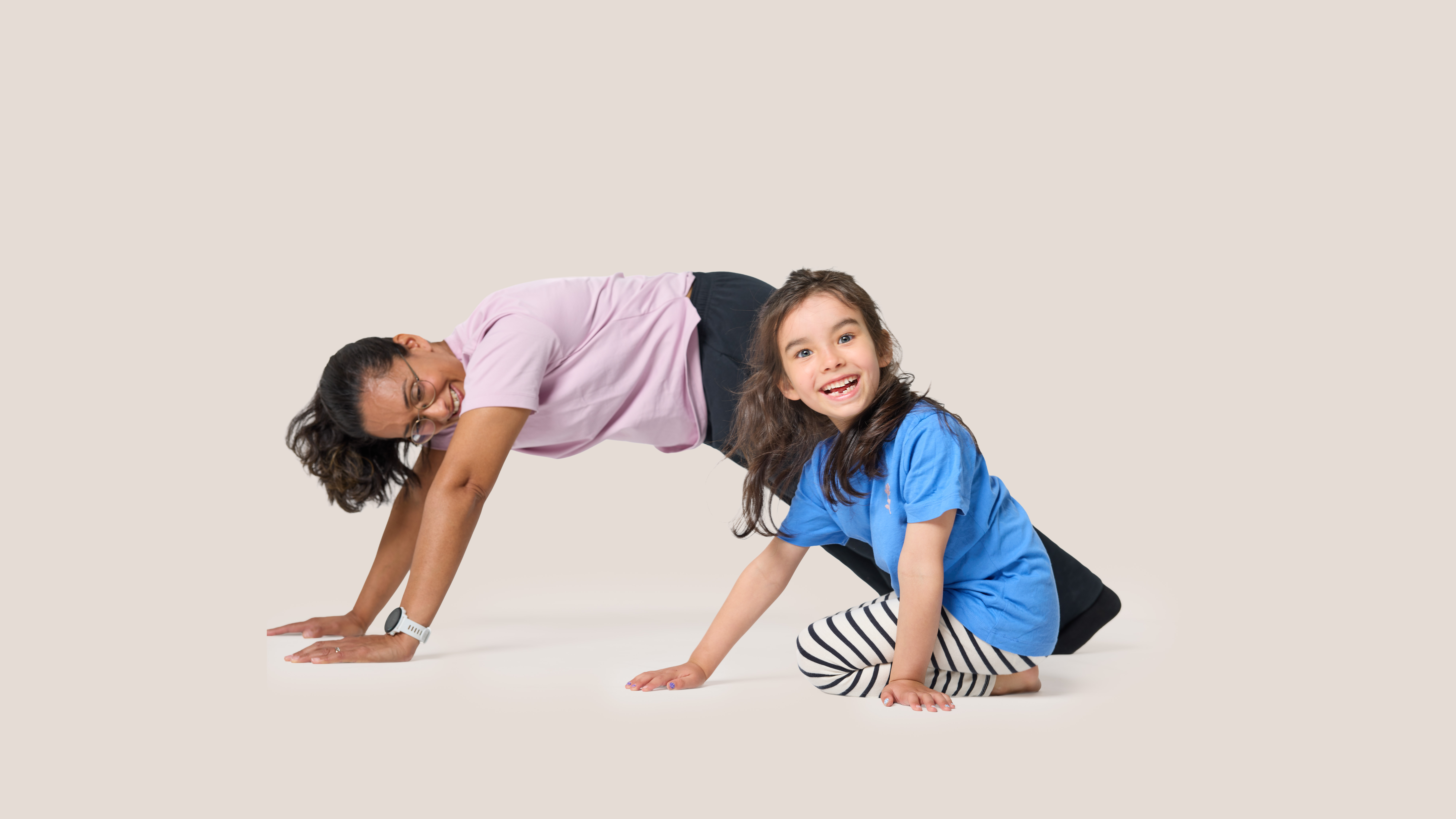 En vuxen och ett barn tränar tillsammans.