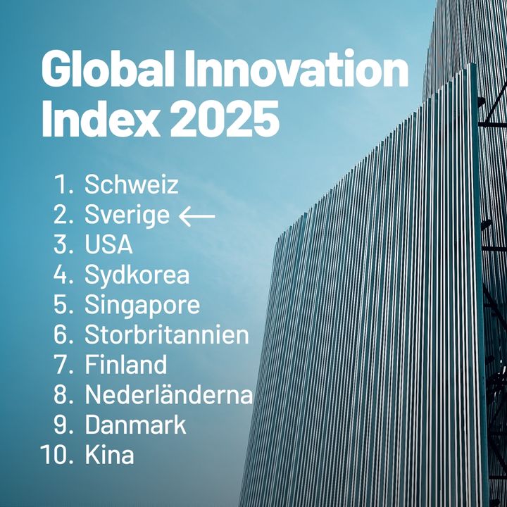 Sverige rankas tvåa i Global Innovation Index 2025