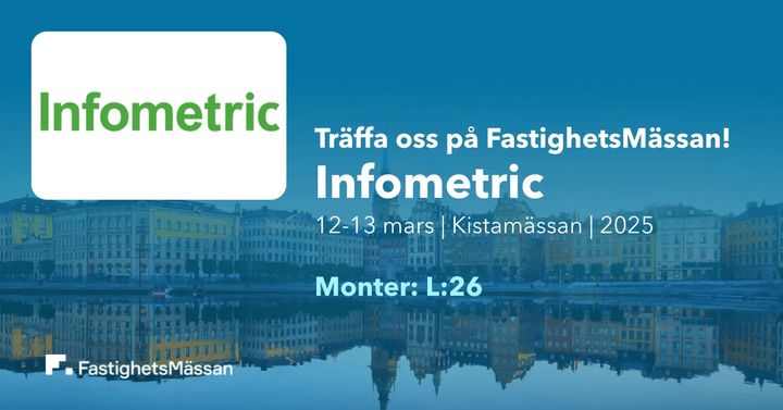 Den 12-13 mars möter du Infometric i monter L:26 på FastighetsMässan i Kista. Vi kommer berätta om alla fördelar med individuell mätning och debitering av el och vatten för er som brf eller fastighetsägare. Med temperaturmätning kan också värmesystemet optimeras.