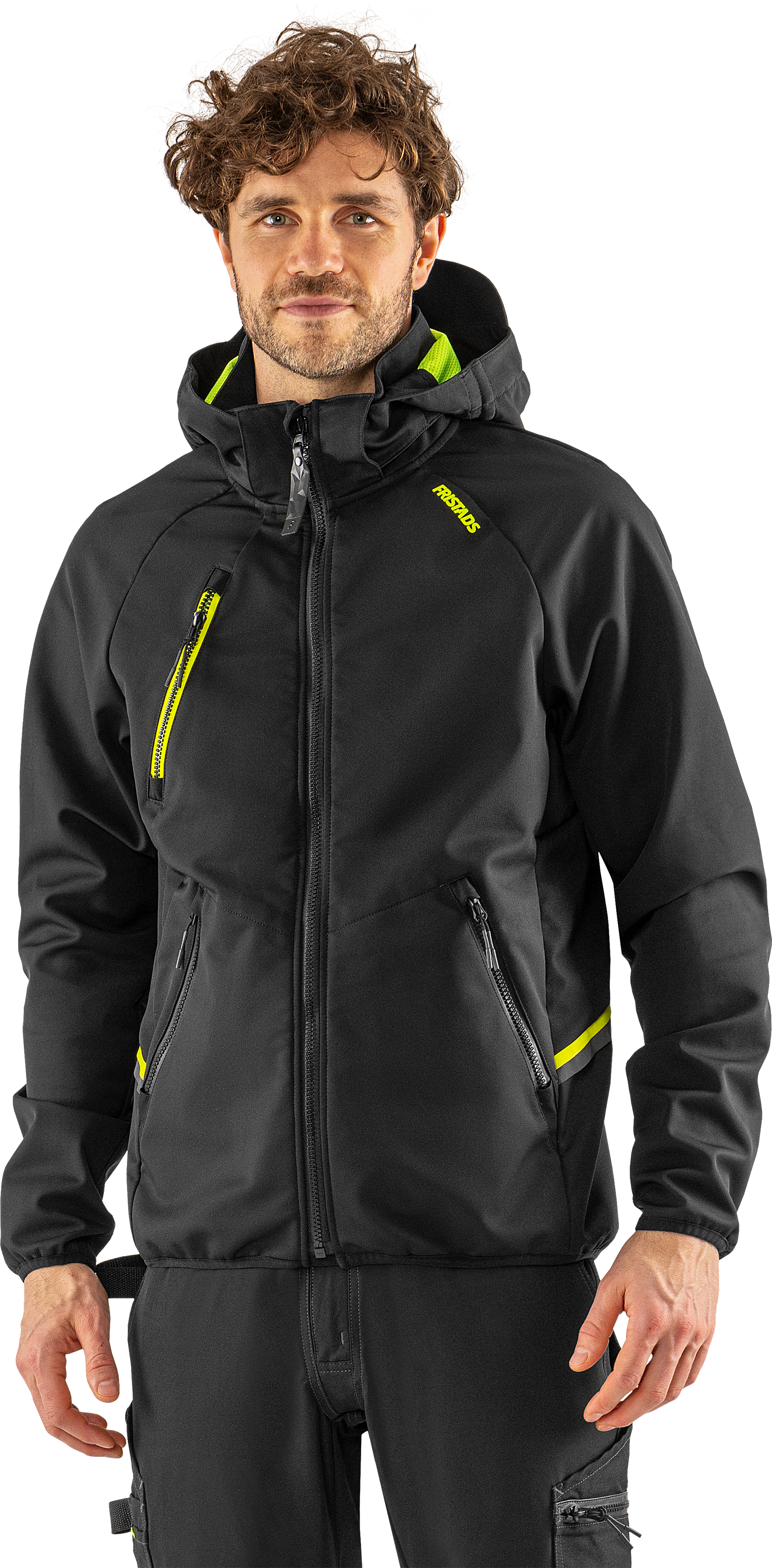 Jackan är vind- och vattenavvisande och har en andande membrankonstruktion som gör den bekväm att bära en hel dag. Den är framtagen för lager-på-lager-principen och fungerar som ytterlager tillsammans med ett fukttransporterande baslager och en tunn mellanlagertröja. På så sätt blir det enkelt att justera klädseln när vädret växlar – något som är vanligt på arbetsplatser där det kan vara kallt på morgonen, varmt mitt på dagen och blåsigt eller regnigt på eftermiddagen.