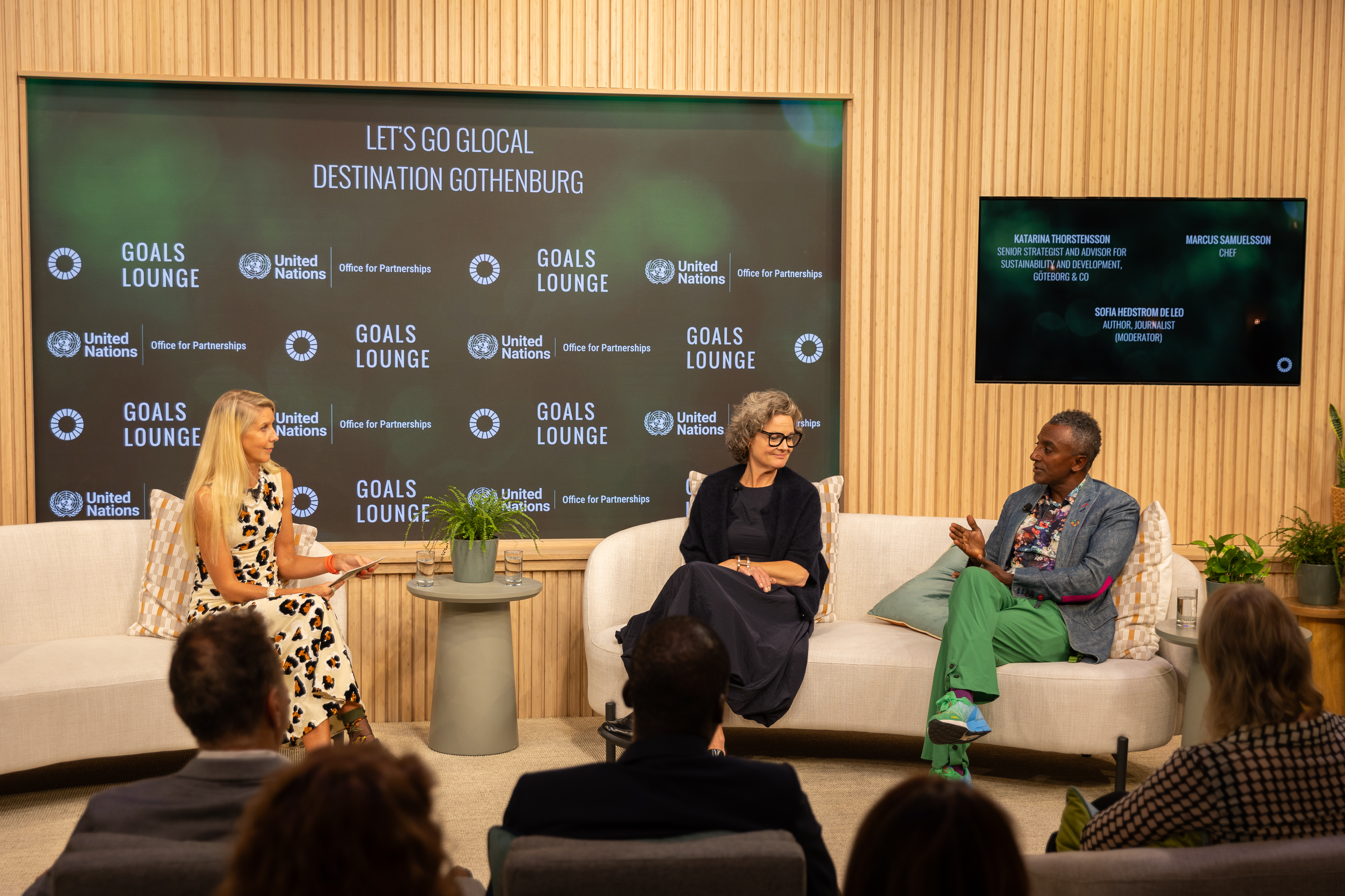 Göteborg presenterades som FN:s nya hållbarhethubb onsdagen den 24 september inför världsledare, politiker och media. Den internationellt kända kocken Marcus Samuelsson, som är uppvuxen i Göteborg, pratade om hållbar mat och serverade sin version av Göteborgs nya signaturrätt Gothenburg Royale till publiken, i ett samarbete med Visit Sweden. På plats var också Katarina Thorstensson, strateg hållbarhet och destinationsutveckling på Göteborg & Co, som presenterade olika hållbarhetsprojekt som staden arbetat med under de senaste åren.