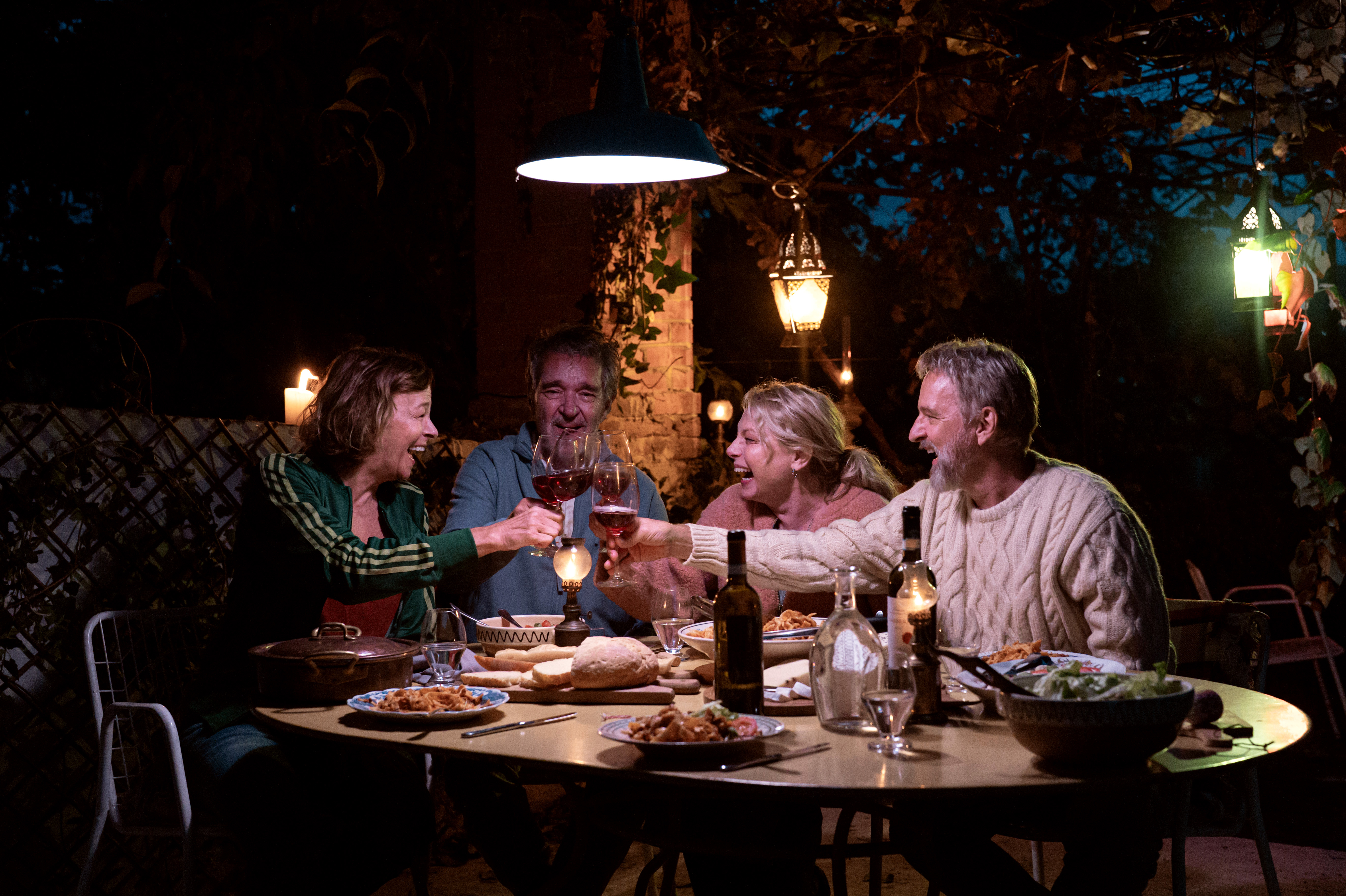 En eskapistisk feelgoodfilm där fyra vänner (Helena Bergström, Kjell Bergqvist, Björn Kjellman och Kajsa Ernst) tillika nyblivna pensionärer åker tillsammans till Italien där en av dem ärvt en olivgård. Tanken är initialt att reda ut det juridiska och sälja gården. Men väl där väcks frågan; vad har de egentligen i Sverige att återvända till?