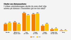 36% av cheferna uppger att de arbetar på distans mindre än en dag i veckan