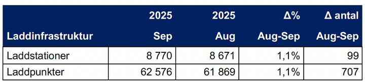 Laddinfrastrukturstatistik september 2025