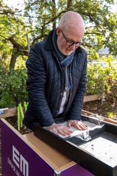 Kommunstyrelsens ordförande Mats Gerdau (M) gjorde avtryck i brf Torgstråket med Einar Mattsson