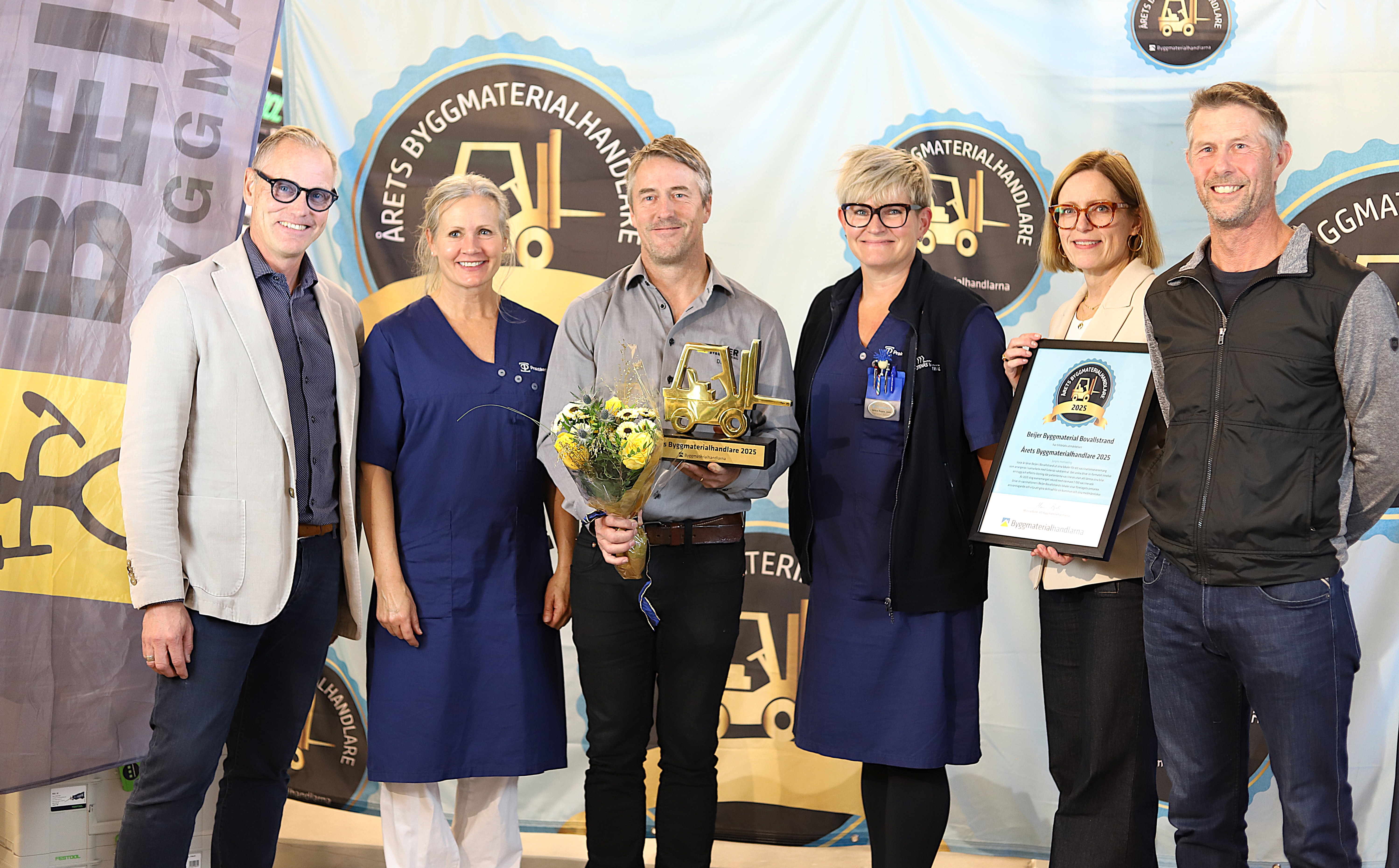 Beijer Bovallstrand har tilldelats utmärkelsen Årets Byggmaterialhandlare 2025 av branschorganisationen Byggmaterialhandlarna för sitt arbete med drive-in vaccination, där närmare 1 700 personer vaccinerades i företagets lokaler.