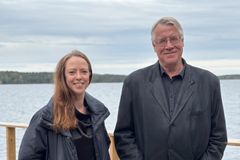 Miljö- och klimatborgarråd Åsa Lindhagen (MP) och stadsbygdnadsborgarråd Jan Valeskog (S) framför den föreslagna gränsen för naturreservatet, intill Riddersvik Herrgård.