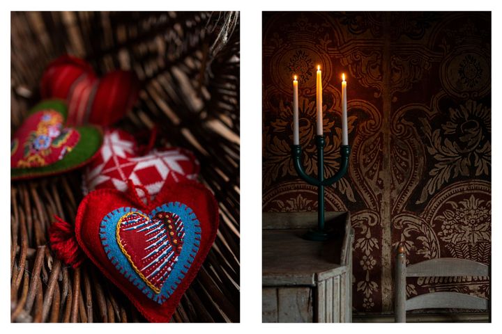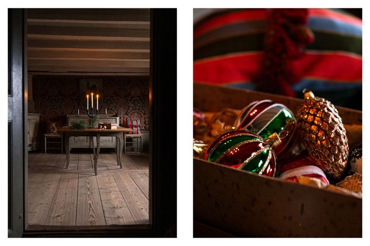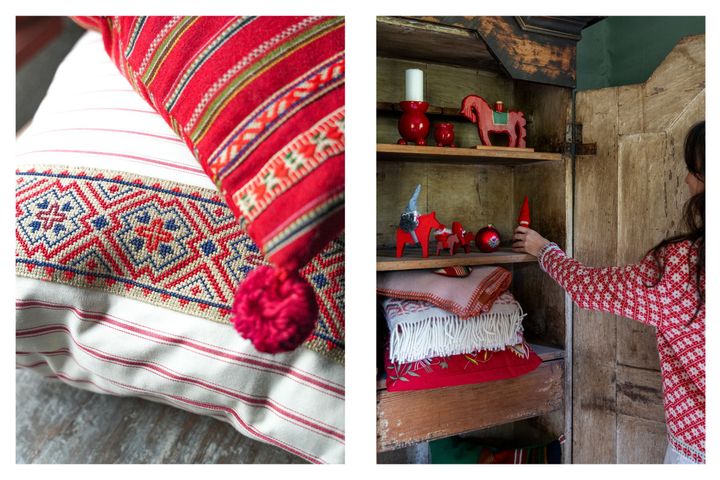 Textilierna följer samma linje – med bordsdukar, löpare, servetter och kuddfodral i klassiska färgställningar och mönster som för tankarna till svensk jul. Ett särskilt inslag är Skansen Recrafted, en serie unika kuddfodral tillverkade av museets överblivna textilier, producerade på plats på Skansen som även de kommer i säsongens färger.