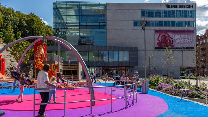 Under 20 år har Världskulturmuseet gömt sitt glitter på insidan av den modernistiska kuben. Från lördag 6 september blir det ändring på det. Den nya utomhusmiljön badar i uttryck från konstnärer som Jonathan Ollio Johansson, Valeria Montti Colque med flera. En helt ny plats - där alla är välkomna - öppnar upp för lek, möten och inspiration från hela världen.