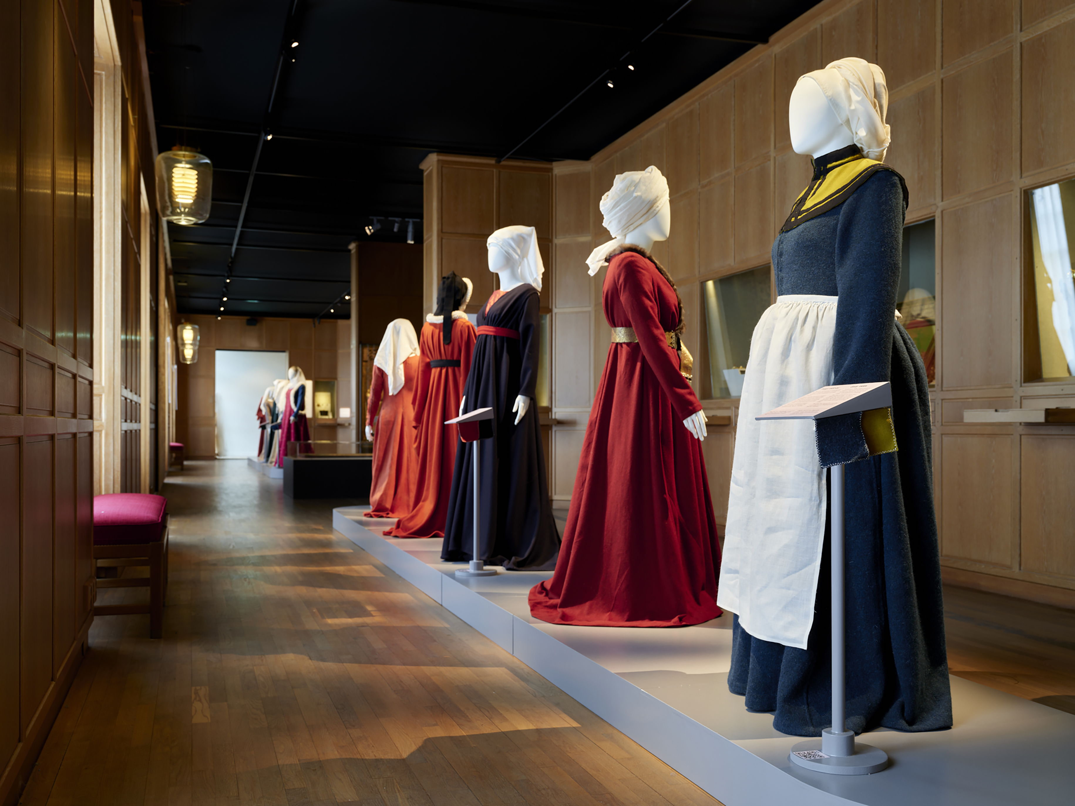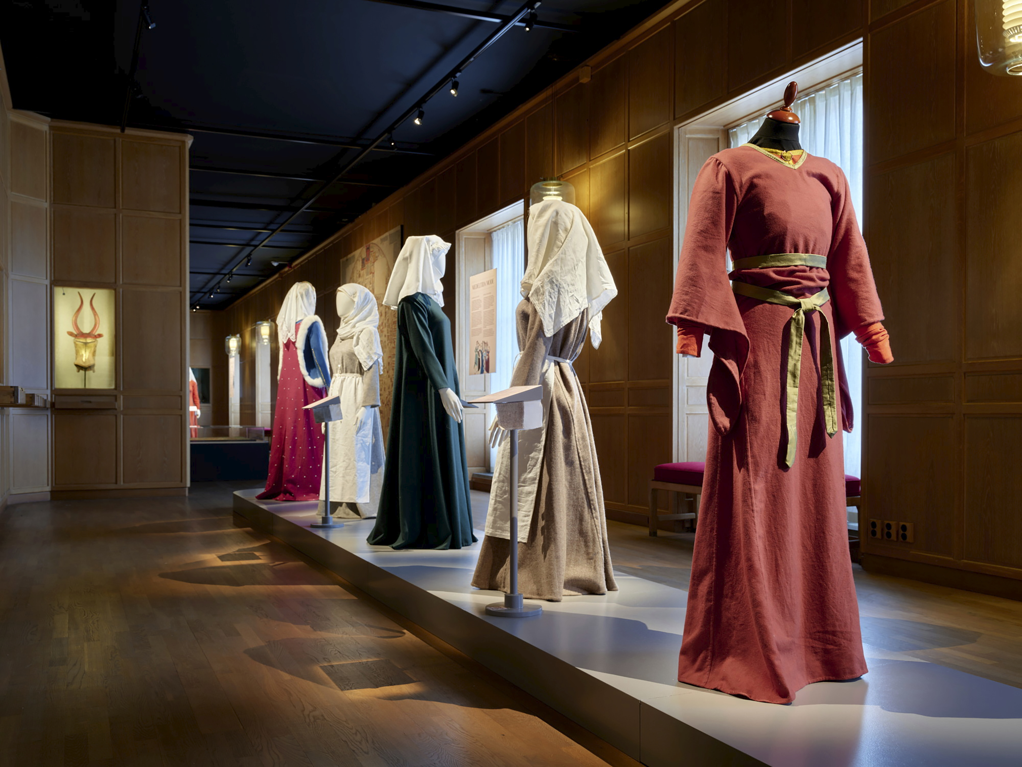 Sedan öppningen hösten 2024 har Medeltida mode visat tio återskapade dräkter som tillsammans berättar om kvinnoklädselns utveckling. Nu tillkommer fyra nya dräkter. Utställningen skildrar nu modehistorien under fem sekler med start i 1000-talet.