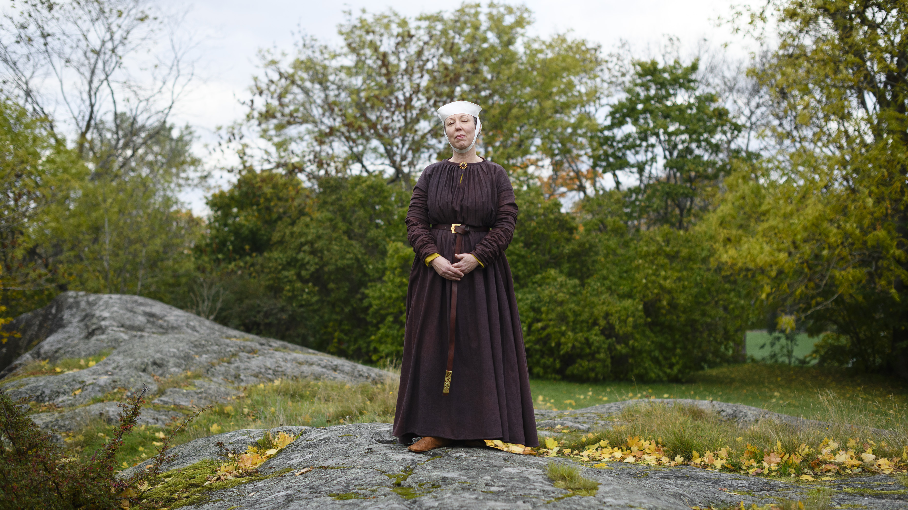 ”Det finns en stark koppling mellan medeltidens hantverk och dagens hållbara modeideal. Genom att förstå hur kläder skapades förr, kan vi också lära oss något om hur vi kan skapa mer medvetet idag”, säger Åsa Dahlstedt, sömmerska vid Medeltidsmuseet.