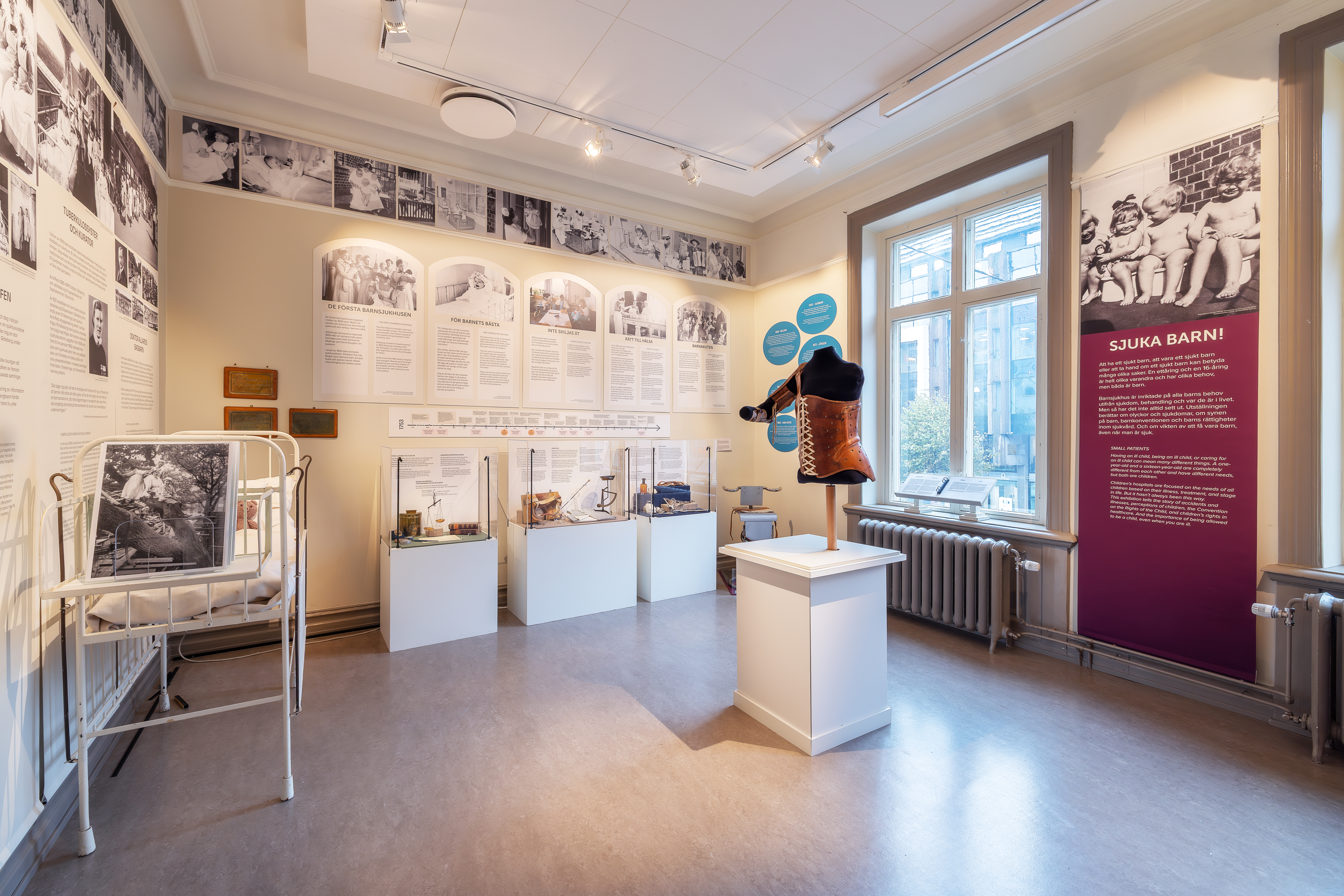 Exempelvis kommer det på utställningen att finnas en läderkorsett som användes för att stötta upp kroppen vid tuberkulos, och ”tonsillstolen” som man spände fast barn i när halsmandlar skulle opereras bort. Det kommer också finnas flera berättelser som museet samlat in, som historier om hur det kändes att vara ensam på sjukhus utan sina föräldrar.