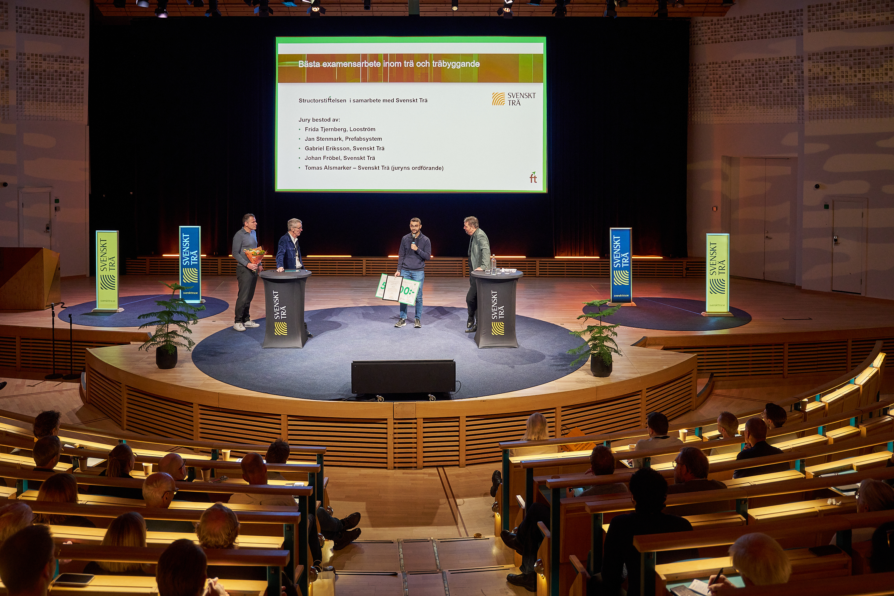 Priset delades ut vid Svenskt Träs seminarium för ingenjörsmässigt byggande i trä den 23 oktober.