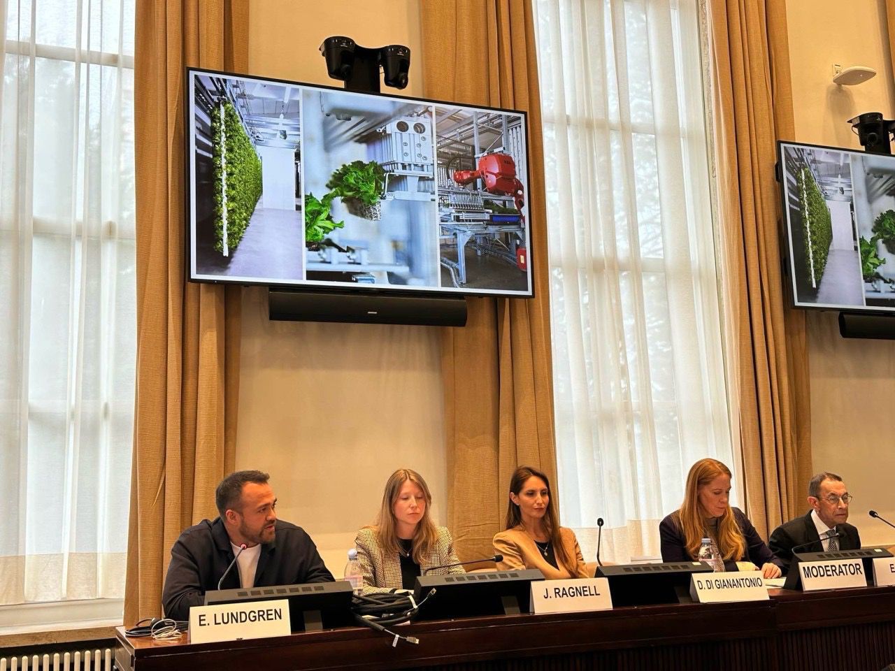 On October 27, Ljusgårda participated in the 17th session of the Team of Specialists on Innovation and Competitiveness Policies (ToS-ICP), held by the United Nations Economic Commission for Europe (UNECE) in Geneva. The innovative company was invited to present its research findings on how AI can optimize indoor farming.
