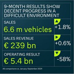 Volkswagen-koncernen visar stabil utveckling under de första nio månaderna 2025, med något högre försäljningsintäkter och totalt 6,6 miljoner sålda fordon. Implementeringen av prestationsprogrammen bidrar nu till förbättrat rörelseresultat.