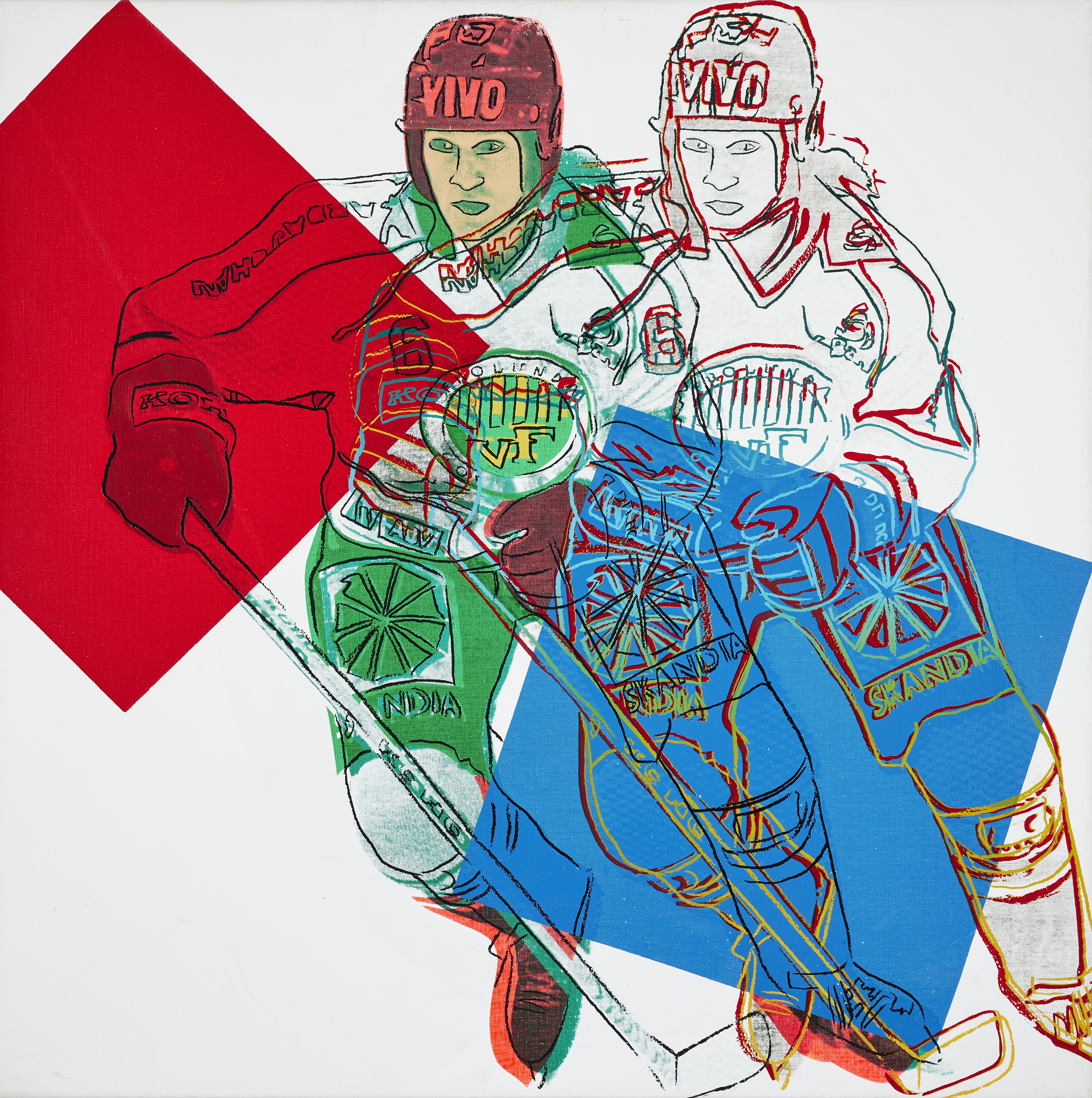 The most prominent highlight of the sale is Yves Klein’s "Âge d’or [Golden Age], (MG 36)" from 1959 – a magnificent work from the artist's legendary Monogold series, estimated at SEK 13–15 million, the highest estimate for any object on the Swedish auction market to date this year. Andy Warhol is also represented, notably with the recently discovered version of the painting "Frölunda Hockey Player "(1986) – an unexpected encounter between pop art and Swedish sports culture – as well as "Monkey (Toy Painting)" from 1983, a nostalgic and playful reflection on the world of childhood.