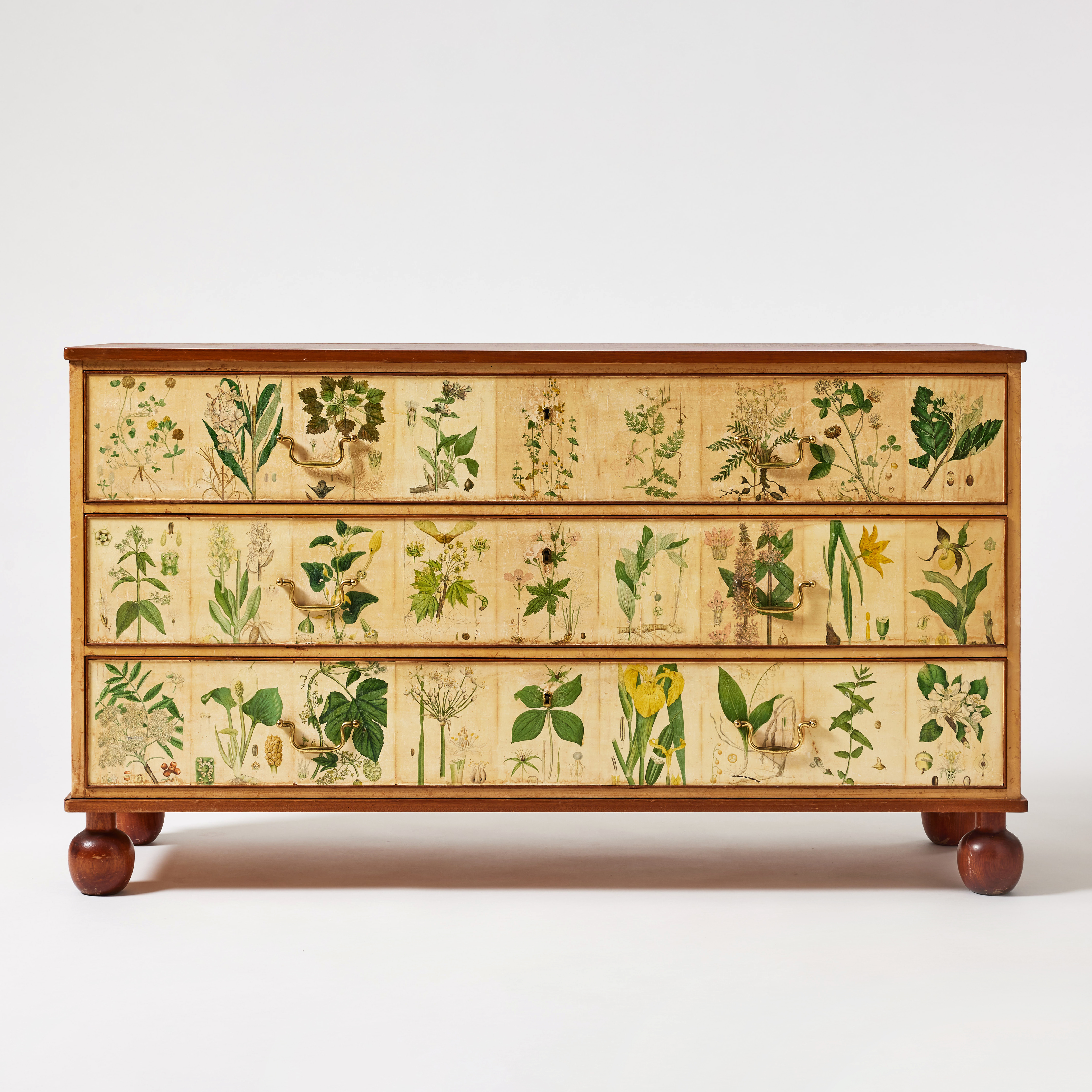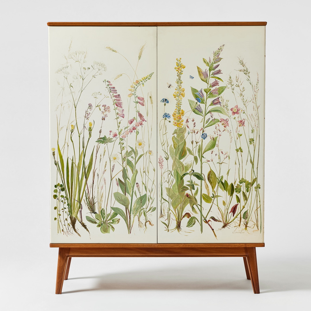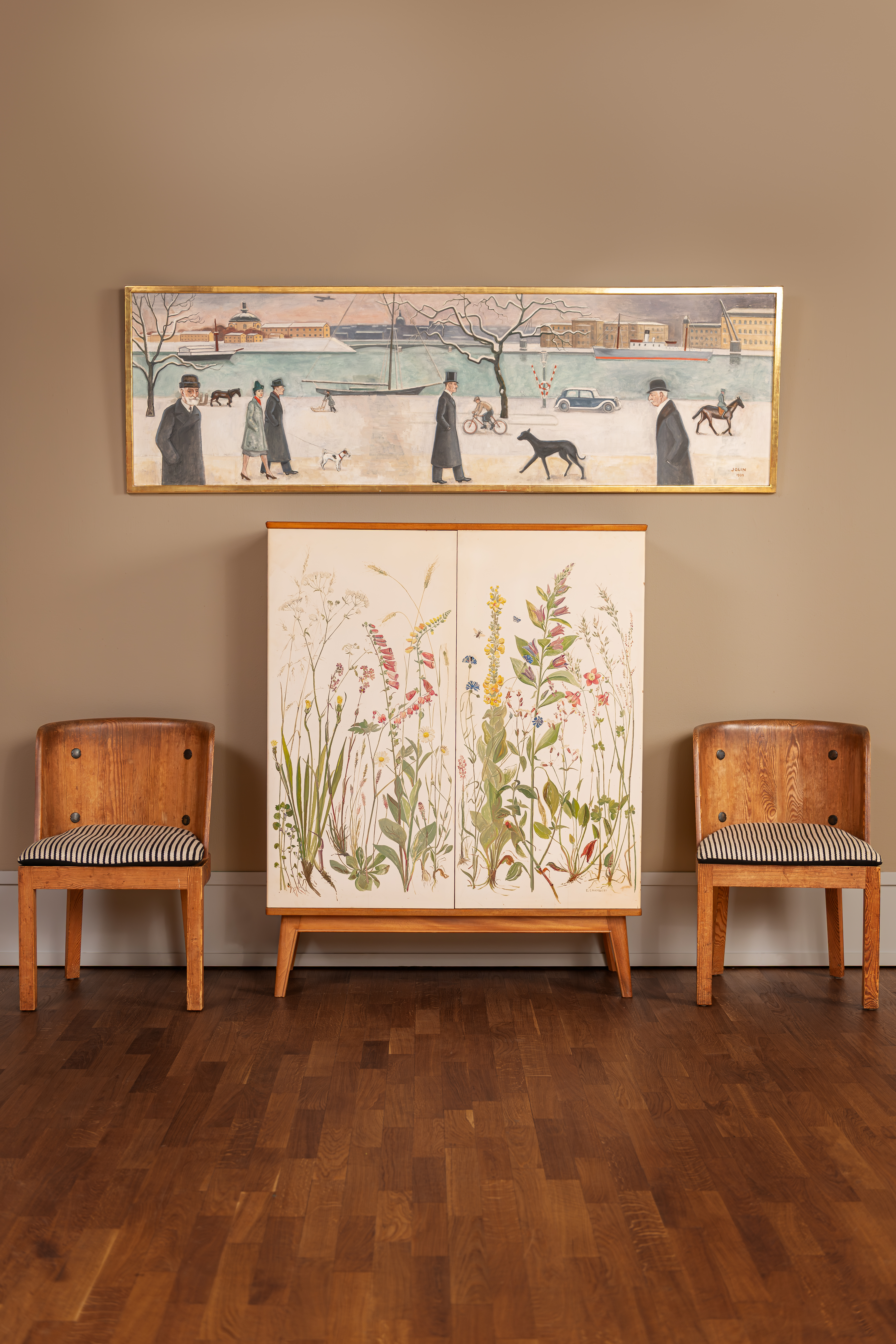 The design section of the auction brings together some of the most influential designers of the 20th century. Josef Frank’s "Flora" chest of drawers for Svenskt Tenn and Erik Chambert’s floral cabinet represent Swedish modernism at its finest. Other highlights include Axel Einar Hjorth’s Utö table (1932), Wiwen Nilsson’s elegant silver vase (1934), Folke Bensow’s "Table No. 10" in Kolmården marble, Jonas Bohlin’s cabinet "Slottsbacken" (1987), and striking ceramic cherries by Hans Hedberg from the artist’s own collection.