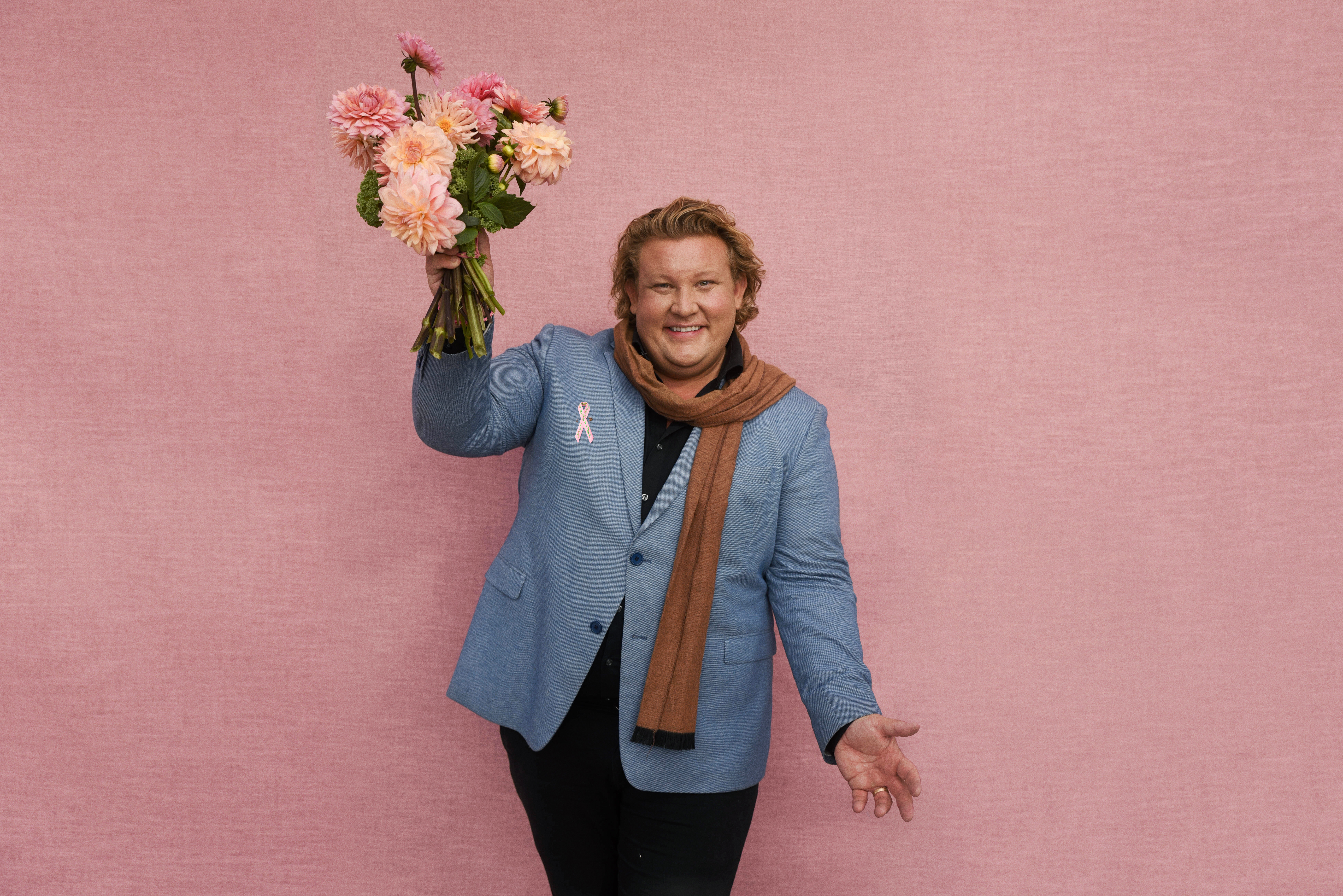 Floristen och trädgårdsmästaren Karl Fredrik Gustafsson har designat årets rosa band. På årets rosa band slingrar sig en grön, växande ranka genom livet, från ett litet frö till gröna blad. När vi tillsammans stöttar cancerforskningen bidrar vi till nästa framsteg och sår ett frö för framtiden, för livet.