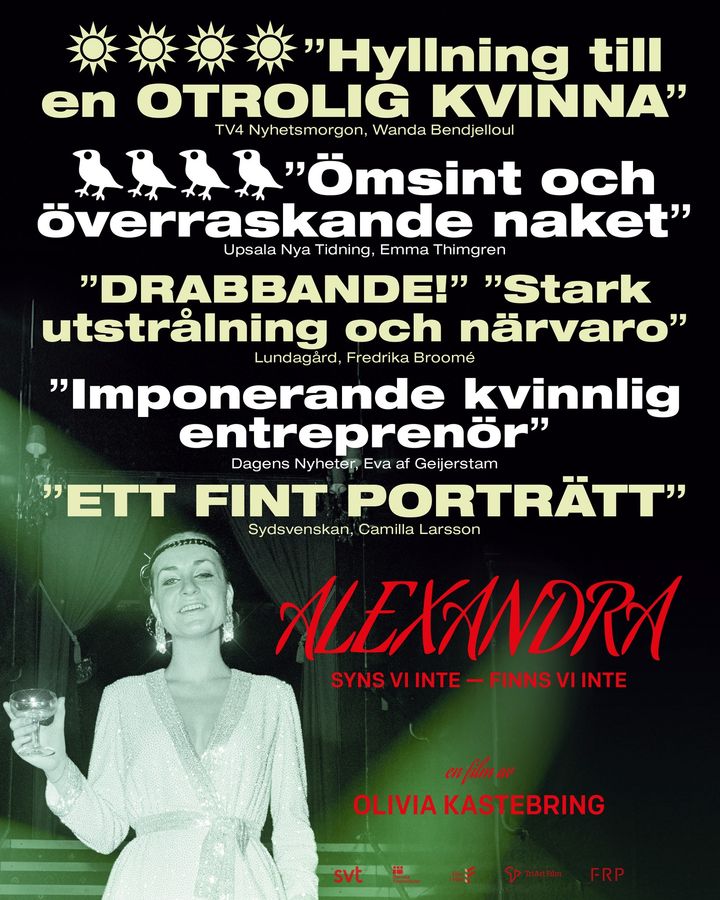 – När jag först fick frågan om att göra filmen kände jag bara till nattklubbsdrottningen Alexandra. Men jag mötte en kvinna med stark drivkraft, nyfikenhet och en orubblig vilja att påverka. Det gjorde mig ännu mer intresserad, säger regissören Olivia Kastebring.