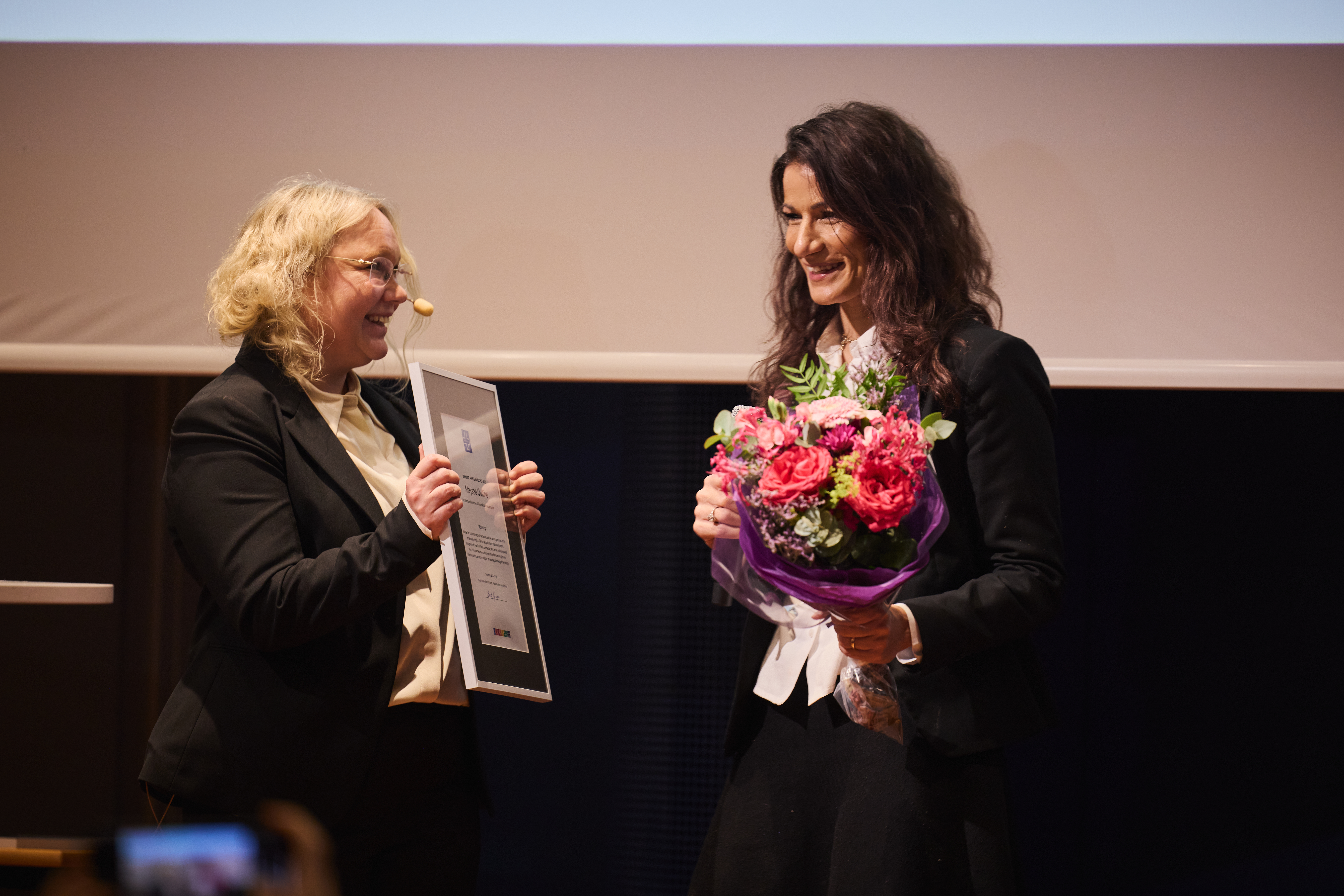 En överraskad vinnare tog emot priset i samband med Vårdförbundet chefsförenings årsmöte vid Karolinska universitetssjukhuset i Huddinge.