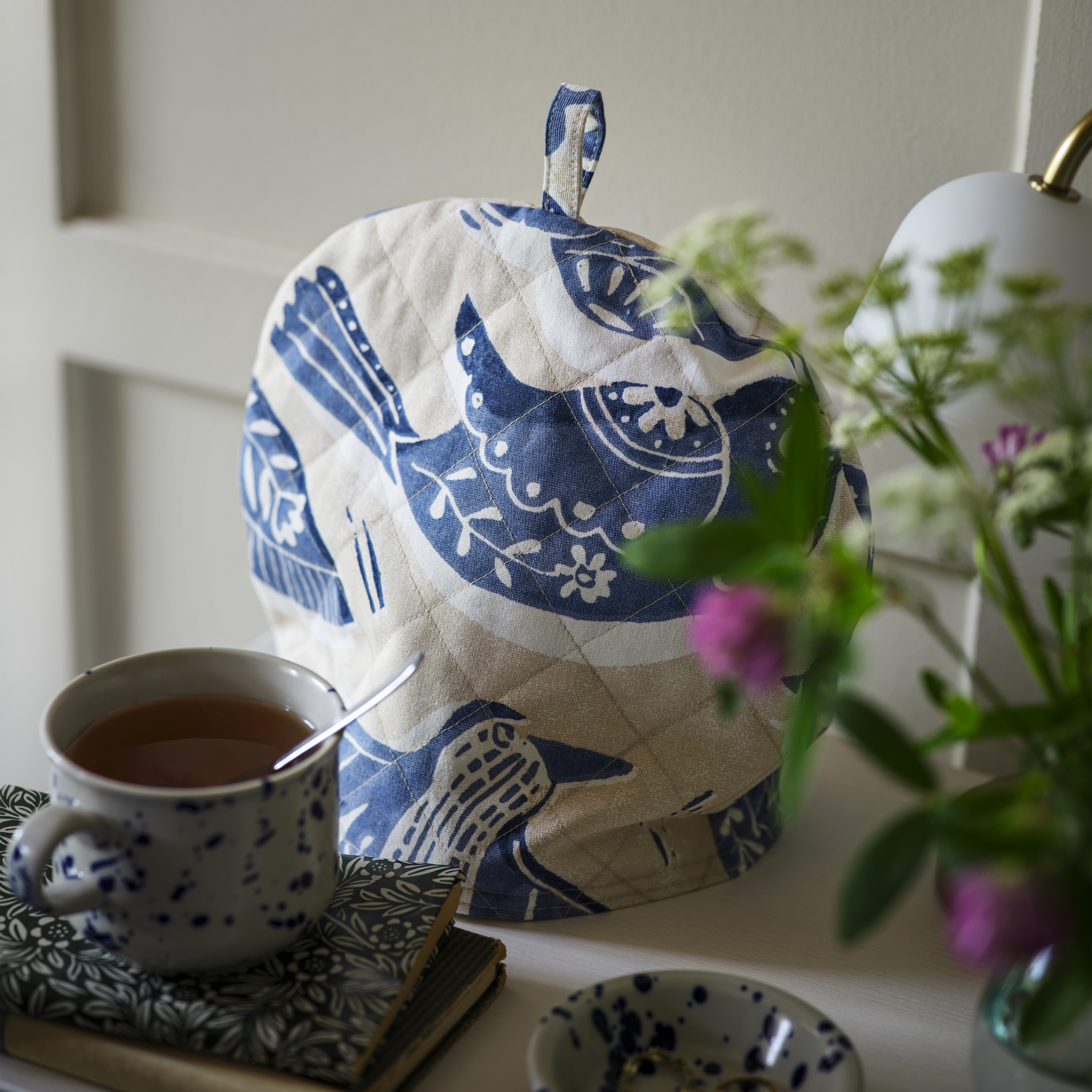 Drömmer du om ett charmigt hus i lantlig engelsk stil? Skapa den perfekta miljön med textil i blått och kombinera mönster med fåglar, blommor och blad. Nu är det bara eftermiddagste och kakor som saknas!