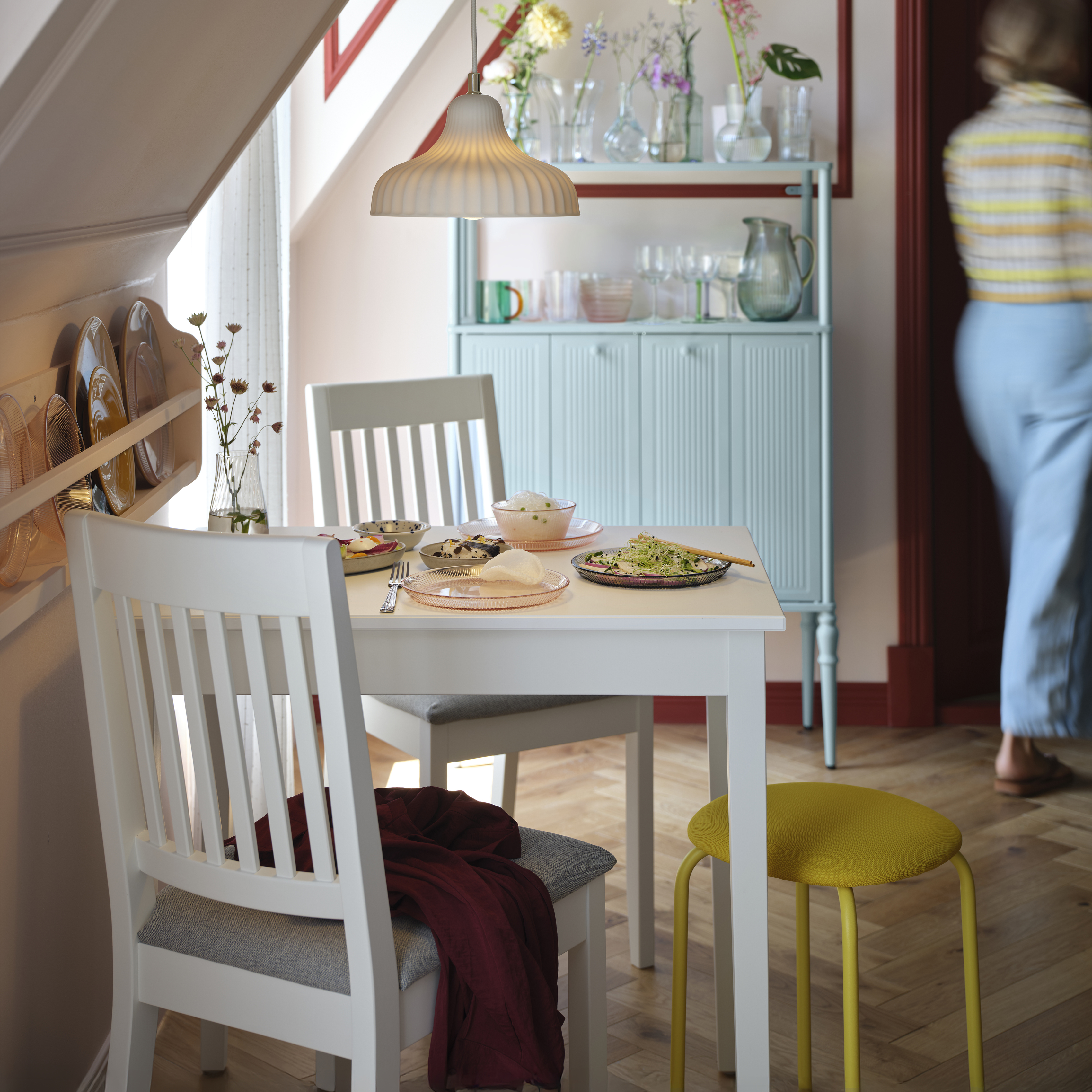 Matplatsserien ROSENTORP förenar klassisk charm med modern bekvämlighet och erbjuder utdragbara bord, stoppade stolar och traditionella sittmöbler i tidlöst vitt eller svart. Stabil konstruktion och tvättbara klädslar för skönhet som varar.