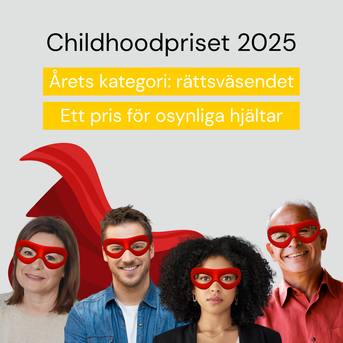 Nomineringen till Childhoodpriset 2025 är öppen. Årets pris riktar ljuset mot yrkesverksamma inom rättsväsendet som skyddar barn mot sexuella övergrepp och exploatering. Alla kan nominera en person som gör skillnad. Juryn består bland andra av H.K.H. Prinsessan Madeleine, Carin Götblad och Cecilia Lundin, Handelsbanken. Vinnaren presenteras i december och belönas med 50 000 kronor.
