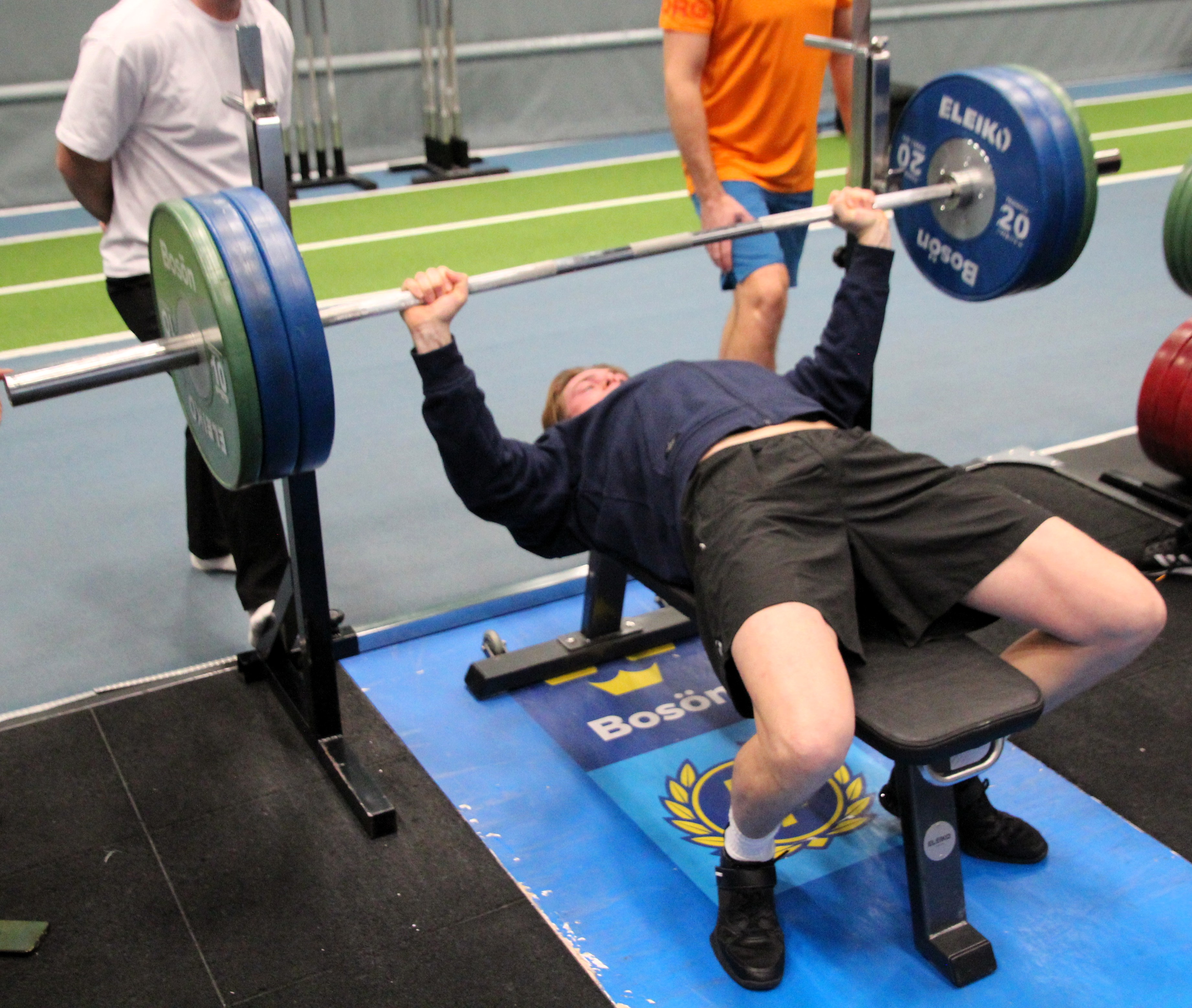 Efter gemensam lunch var det dags för löpning som inleddes med ett renodlat sprinttest. I detta moment mättes våra elitidrottares maximala löpstighet på bana med tidtagning via fotoceller 6 ggr under 30 meter. Dagens tester avslutades med ett konditionstest och en så kallad 6-minuters MAS-test. Kort beskrivet fungerade detta på så vis att deltagarna skulle springa så långt som möjligt på 6 minuter på den 200m långa inomhusbanan. Ett otroligt tufft men motiverande testmoment som kom att framtvinga det yttersta hos varje deltagare.
