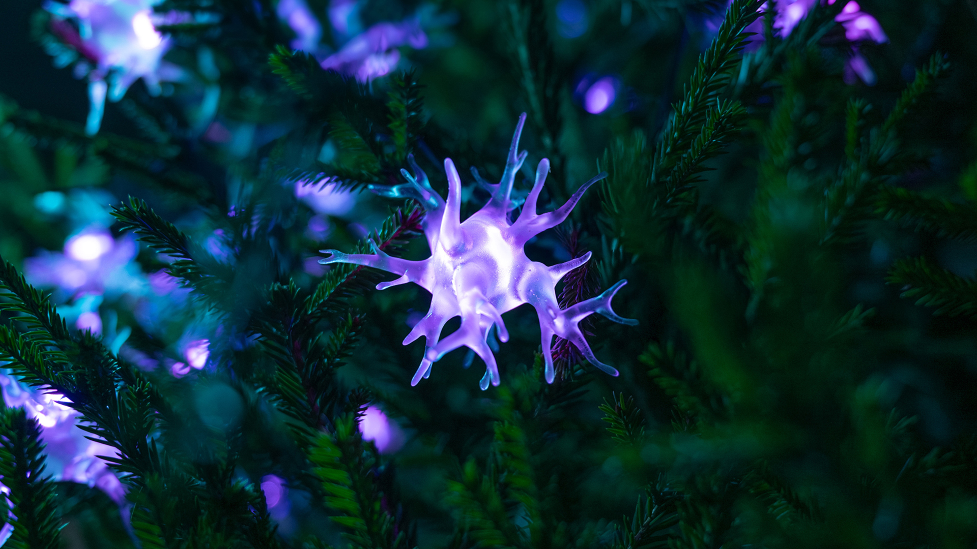 En ljusslinga med ljus i form av hjärncellsliknande strukturer, programmerad att efterlikna Alzheimers sjukdom.
