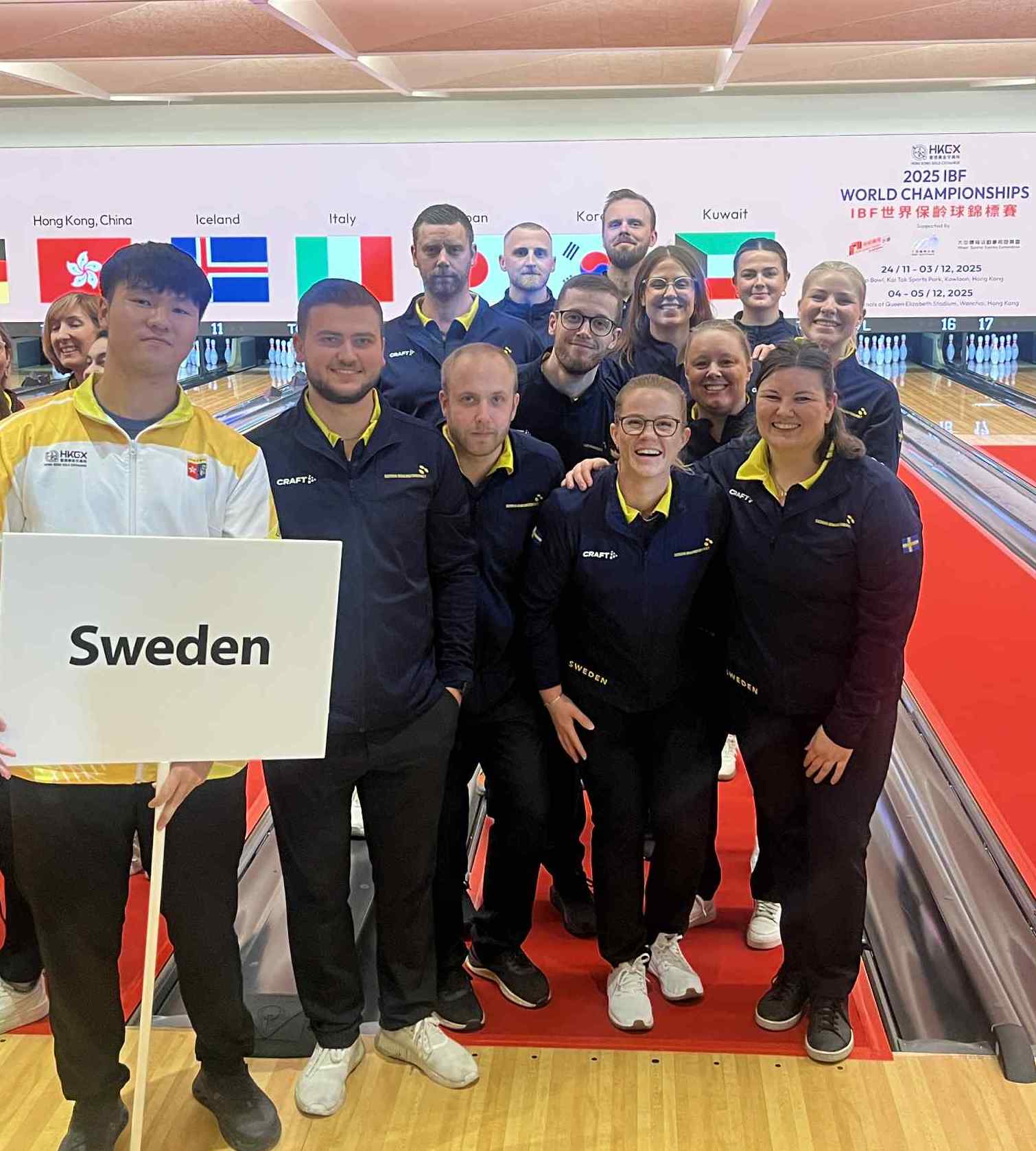 Sex damer och sex herrar representerar Sverige i bowling-VM. Det svenska laget kom till Hongkong i lördags och tränade två träningspass under söndagen. Idag stod den officiella träningen på programmet. Träningen var på 90 minuter och herrarna hade träningen på förmiddagen och damerna intog banorna på eftermiddagen. I förberedelserna inför VM har spelarna kunnat träna på den officiella oljeprofilen på 46 fot men måndagens träning blev första gången som de fick spela på profilen i mästerskapshallen Kai Tak Sport Park.
