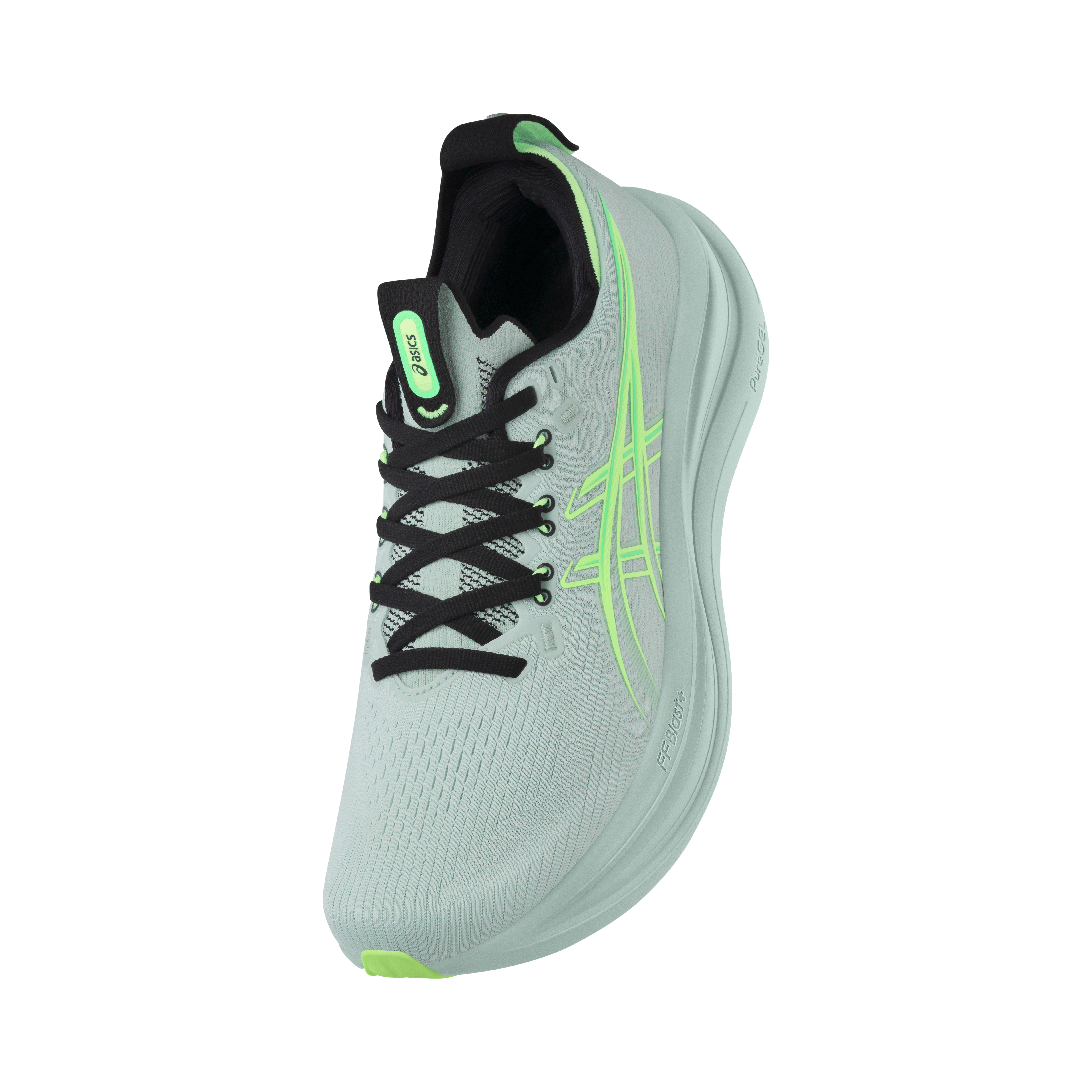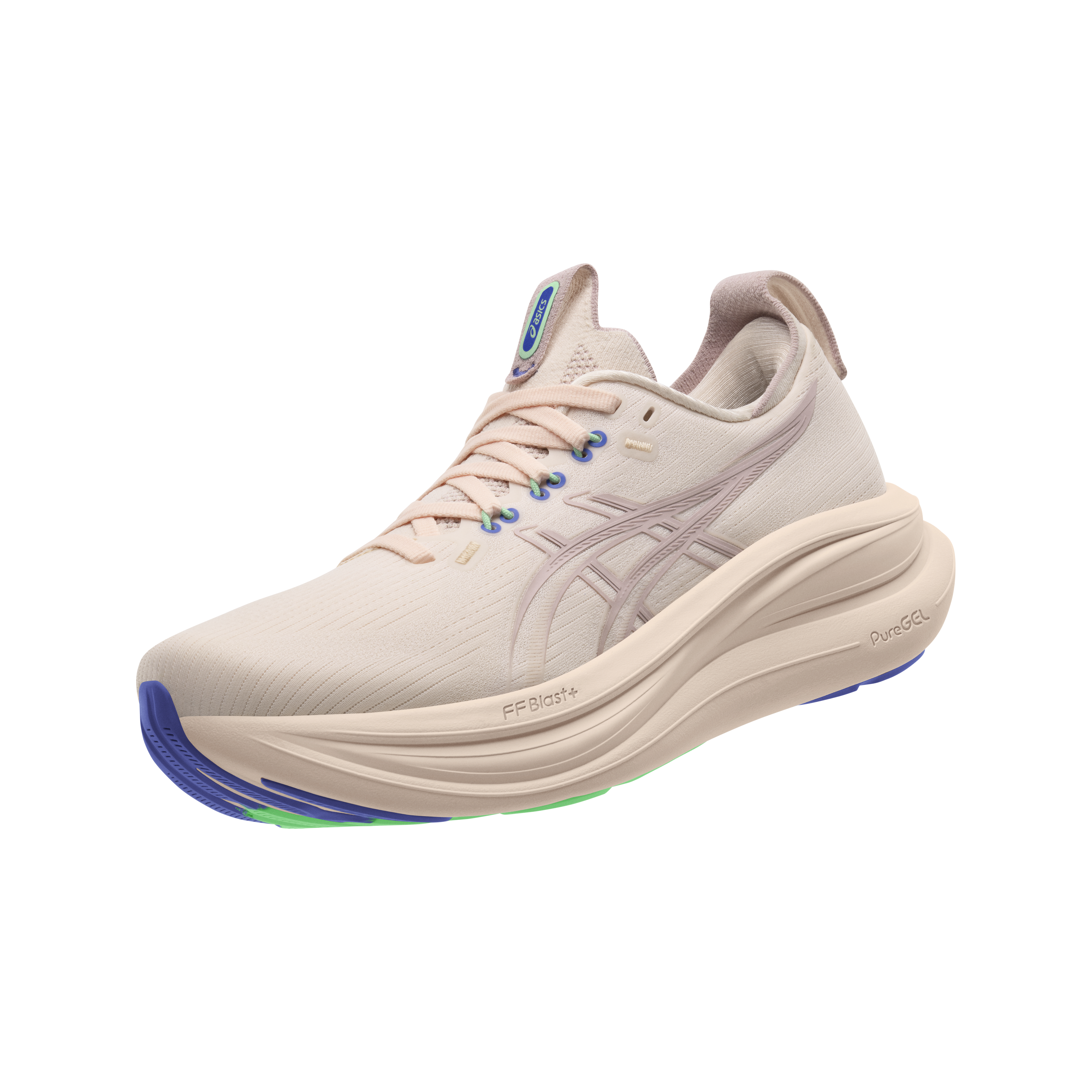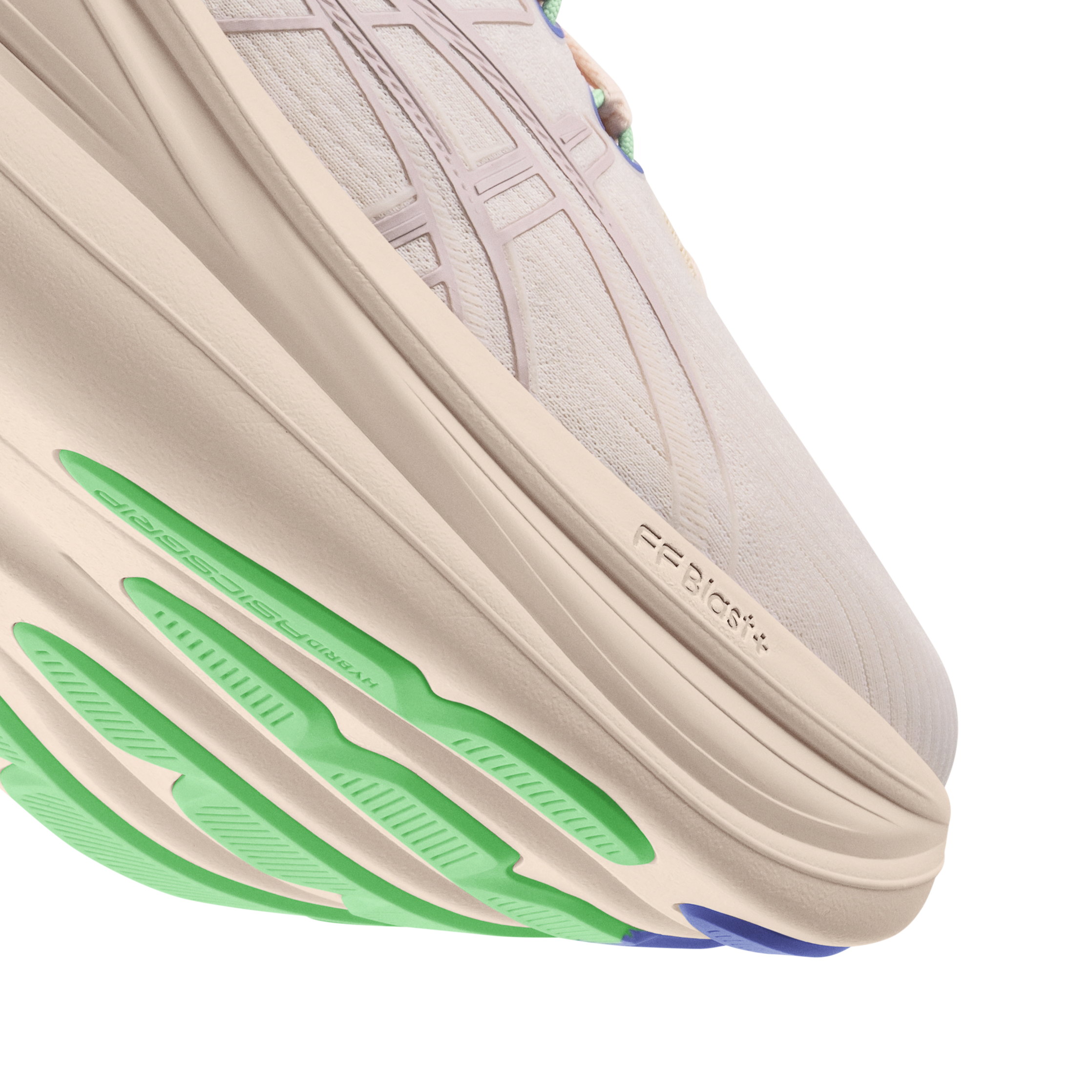 NIMBUS’™ komfort bygger især på ASICS’ FF BLAST™ PLUS dæmpning, som giver bløde landinger med en let fornemmelse under foden. Derudover er skoen udstyret med PureGEL™, som er en endnu blødere og opdateret version af ASICS’ velkendte GEL™ teknologi, der ligger under hælen. Det sikrer den samme pålidelige stødabsorbering som tidligere, men i en lettere udgave.
