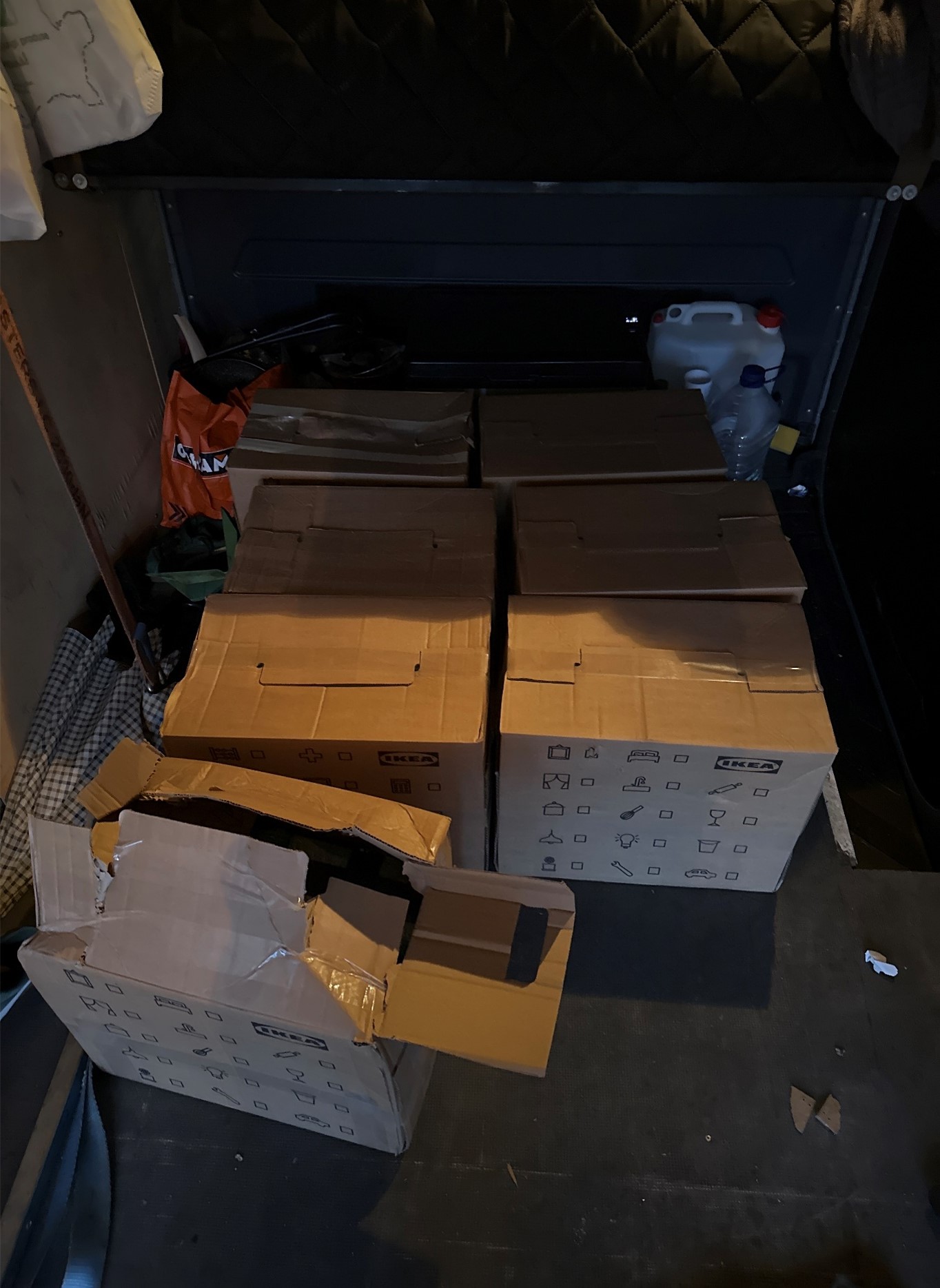 – Vi hittar stora mängder kokain i de två fordonen. I skåpbilen finns det sju flyttlådor med sammanlagt 140 kilo kokain. I husbilen fanns en flyttlåda och en svart sportbag som tillsammans innehöll 30 kilo kokain, berättar Richard Johansson.
