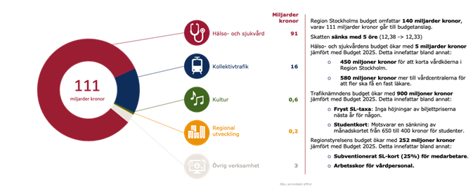 Mittenkoalitionen i Region Stockholm – Socialdemokraterna, Centerpartiet och Miljöpartiet – presenterade tillsammans med Vänsterpartiet i dag förslag till budget för 2026. Det är en budget som bygger Stockholmsregionen starkare. Budgeten innehåller både sänkt skatt, stora förstärkningar av sjukvården och en rejäl utbyggnad av kollektivtrafiken.