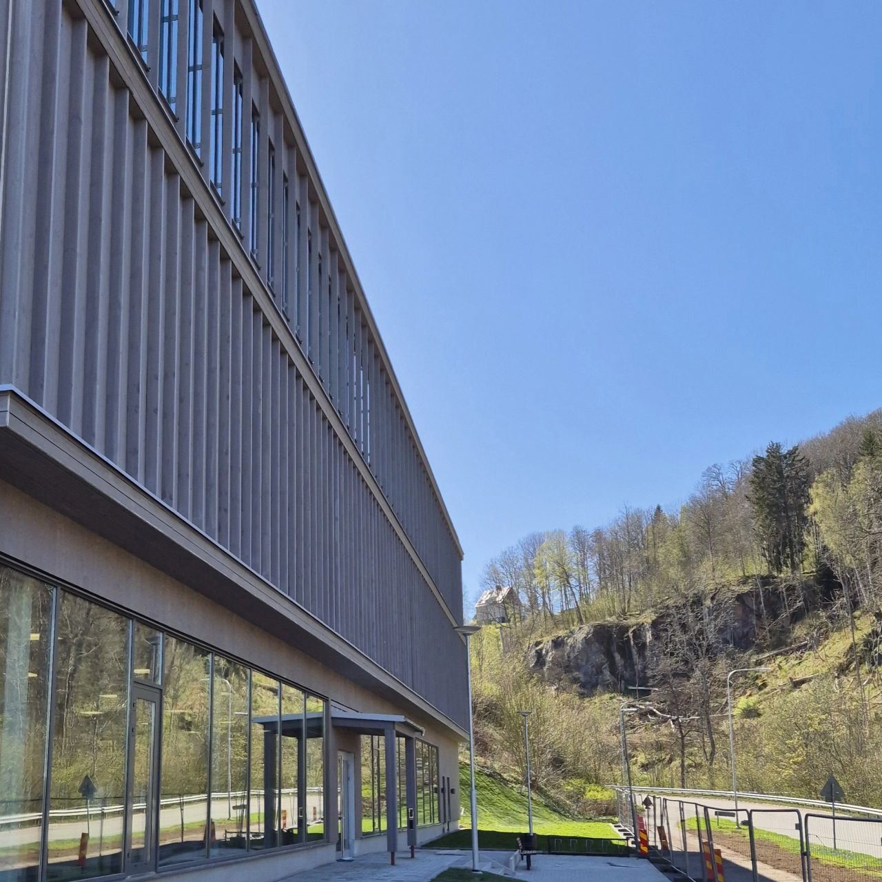 Motivering: ”Utmaningarna med den krävande tomten löses elegant genom att funktioner placeras i höjdled. En gång länkar mot den gamla skolan och leder ner till en fullstor idrottshall med generösa utblickar mot naturen i norr och en matsal underst som välkomnar mot huvudgatan, Volymen förankras mot berget med gabionmurar i souterräng.