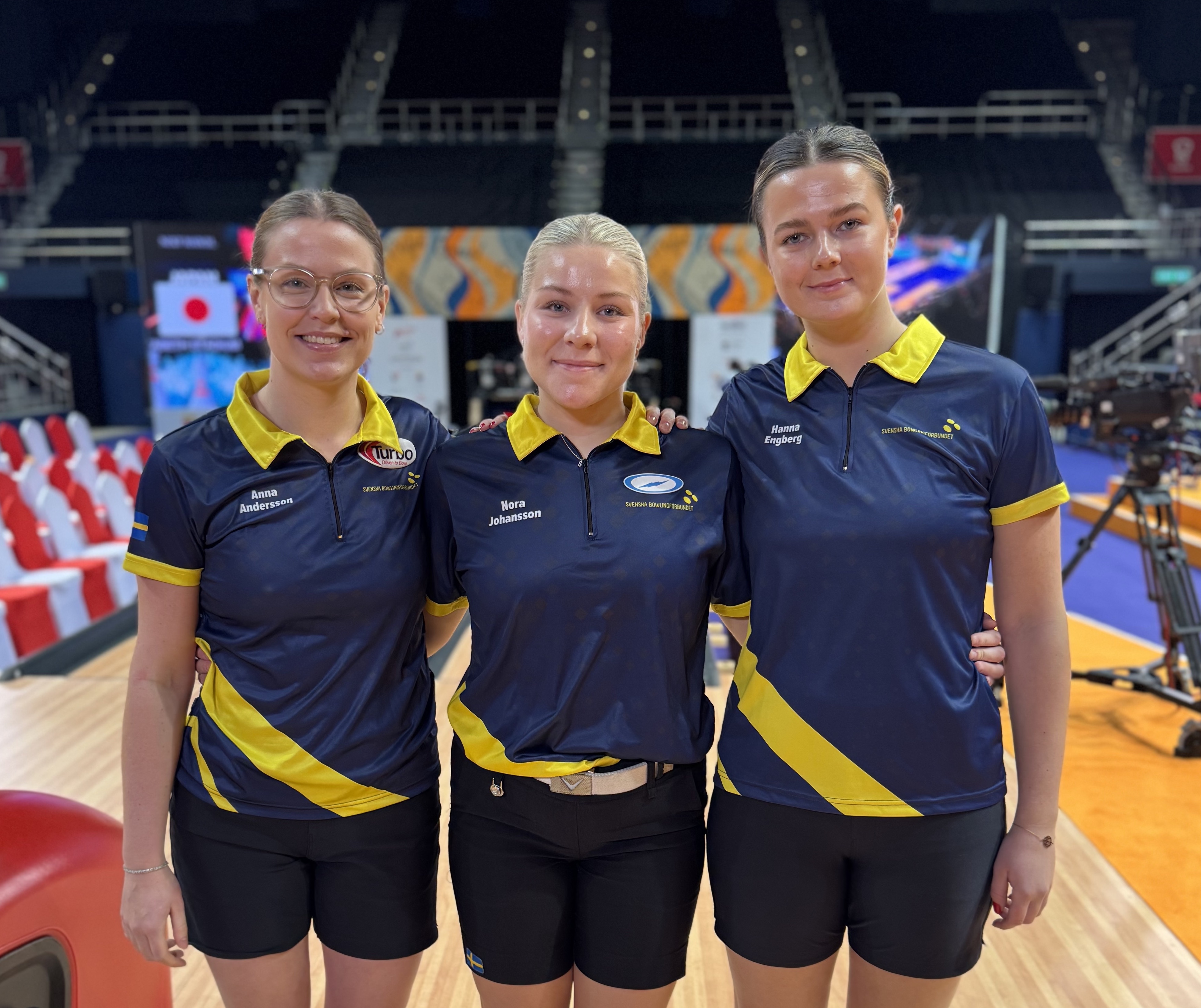 Anna Andersson, Hanna Engberg och Nora Johansson intog Queen Elisabeth Stadium för semifinal i 3-manna under förmiddagen i Hongkong. Spelet stämde inte riktigt för svensktion i semifinalen. Japan tog hem den första serien med 199-164 och vann den andra med 205-188. Anna Andersson, Hanna Engberg och Nora Johansson tar därmed VM-brons. För Hanna Engberg och Nora Johansson är det deras första VM-medalj på seniornivå. För Anna Andersson är det här hennes andra VM-medalj. Hon har sedan tidigare ett silver i lag från 2019.