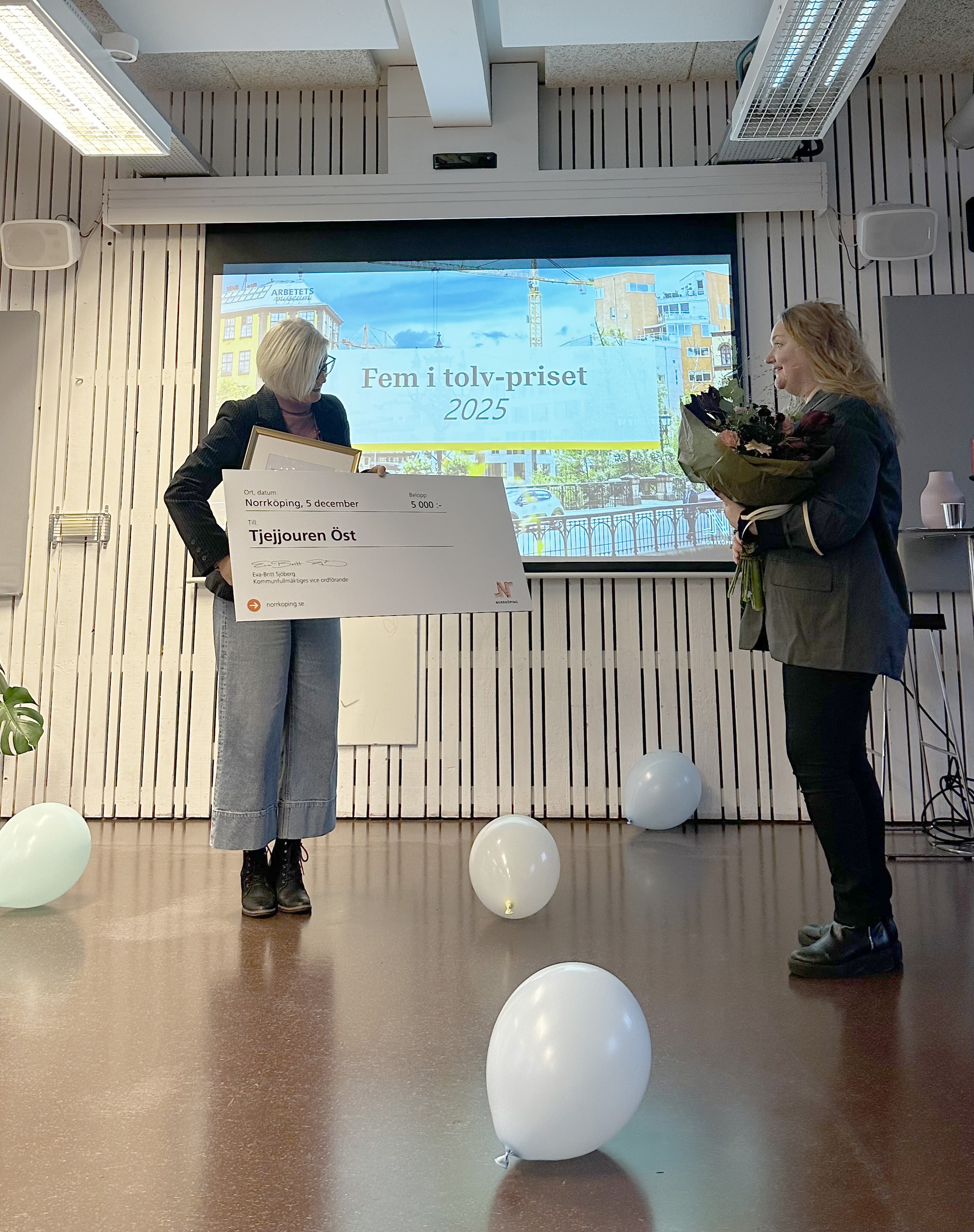 Den ideella föreningen Tjejjouren Öst är årets vinnare av Fem i tolv-priset. Det delades ut i dag, fredag den 5 december, av kommunfullmäktiges vice ordförande Eva-Britt Sjöberg (KD), på Mångfaldshuset i Marielund.