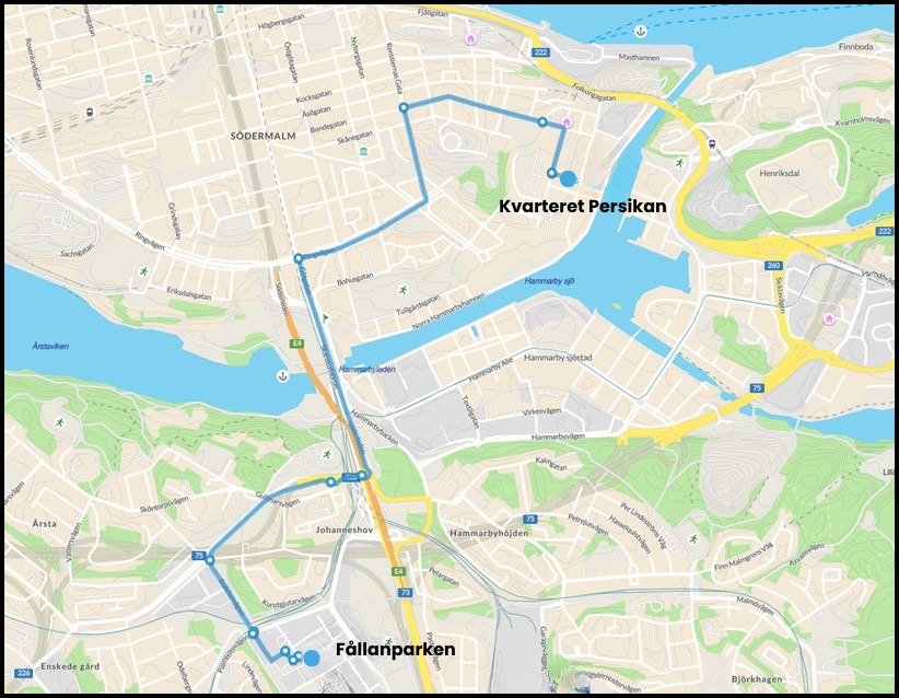 07:30 cirka Ankomst Slakthusområdet, Fållanparken, Hallvägen 10.